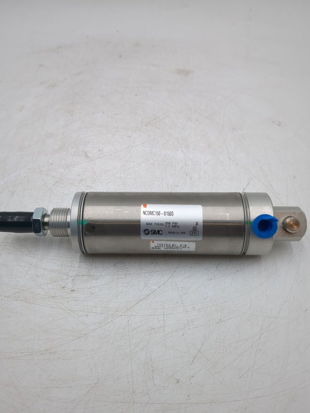 NCDMC150-0150S SMC REM AIR CYLINDER, SERIES NCM, STANDARD SINGLE ACTING, BUILT-IN MAGNET, REAR PIVOT MOUNT, 1-1/2 INCH BORE, 1 -1/2 INCH STROKE, SPRING RETURN,