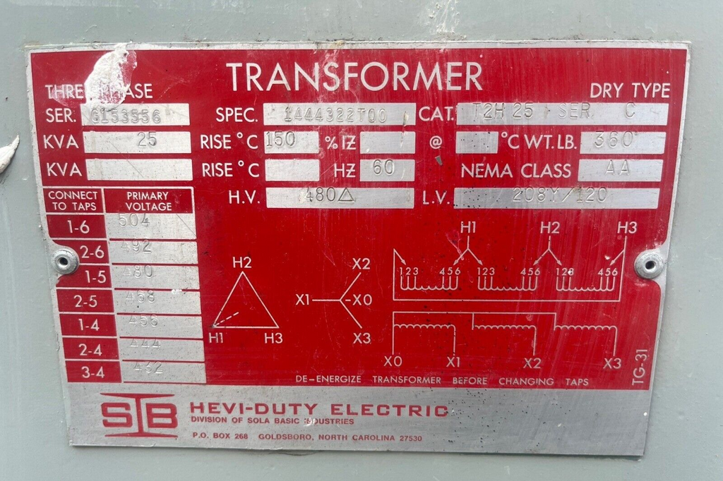 25KVA Hevi-Duty T2H25 Transformer HV 480V LV 208Y/120V 3PH 60Hz 3 Phase Indoor Weight: 360lb