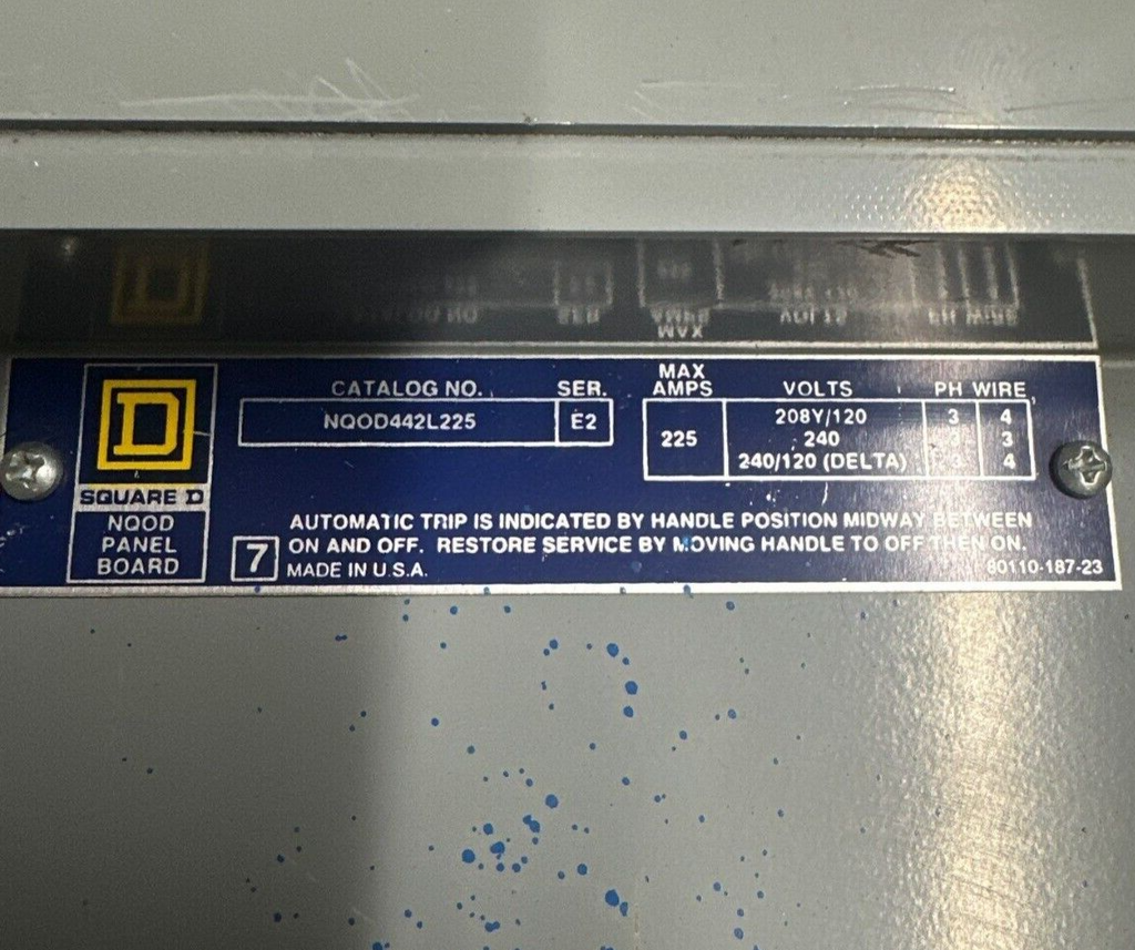 SQUARE D NQOD442L225 NQOD Panelboard 225A 208Y/120V 3P 4W Main Lug MLO Box MH35: 35" x 20" x 6" P298