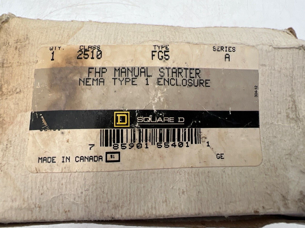 Square D 2510 FG5 Manual Motor Starter FHP NEMA 1 Enclosure NEW