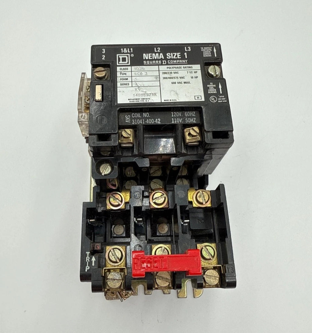 Square D 8536 SCO3 S NEMA Size 1 Starter 27A 10HP 3P 600V Coil 110/120V 8536SC03