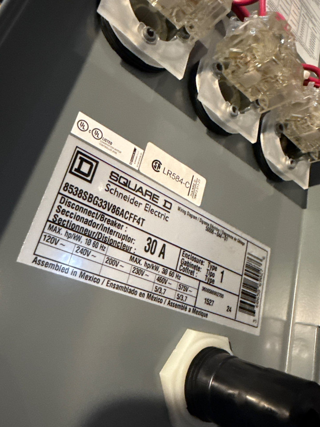Square D 8538SBG33V86ACFF4T Combo Starter Size 0 8536SBO2S Coil 120V 9422FTCF33