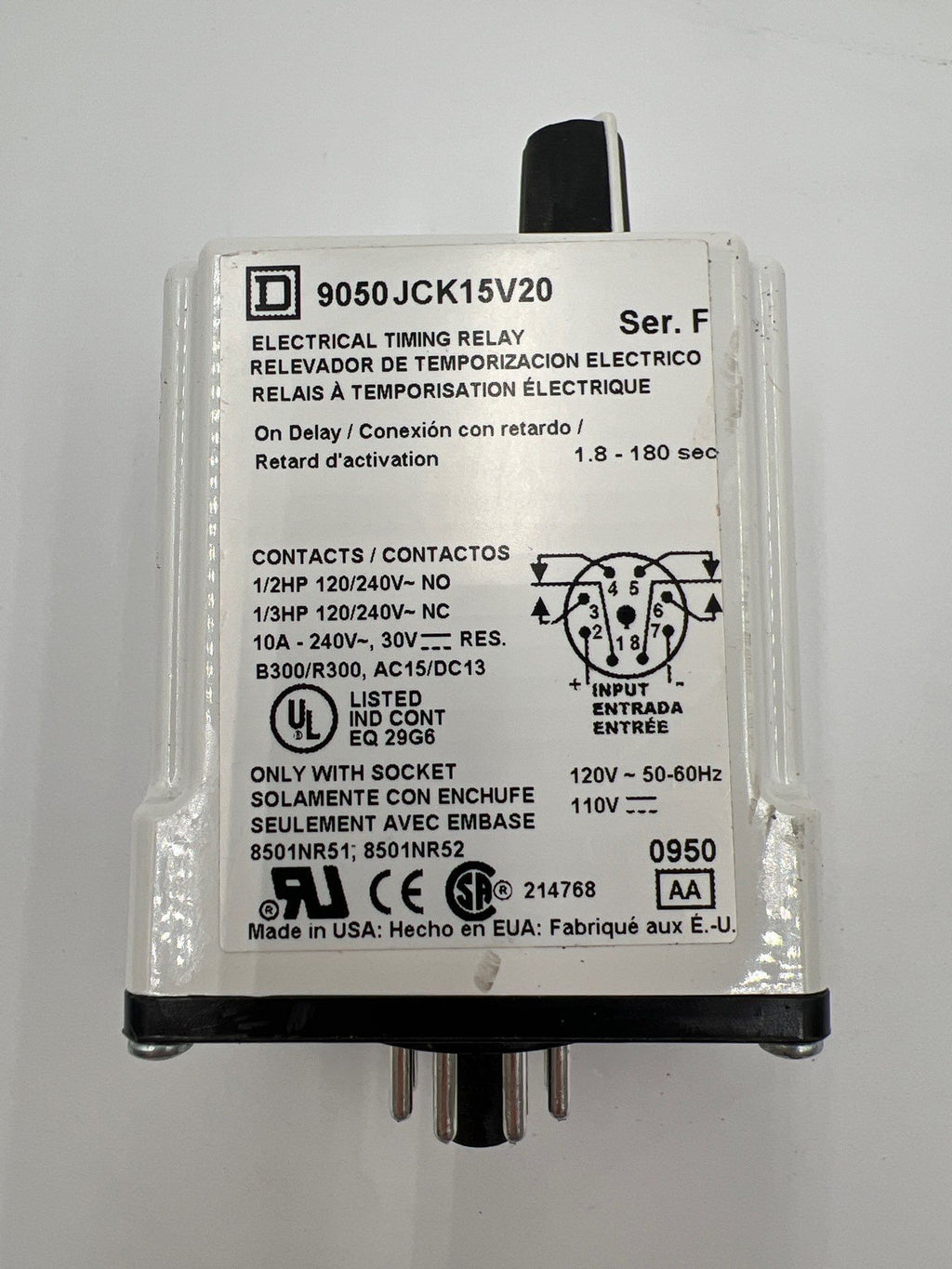 Schneider 9050JCK15V20 Timing Relay On-Delay 1-180s 10A 240VAC