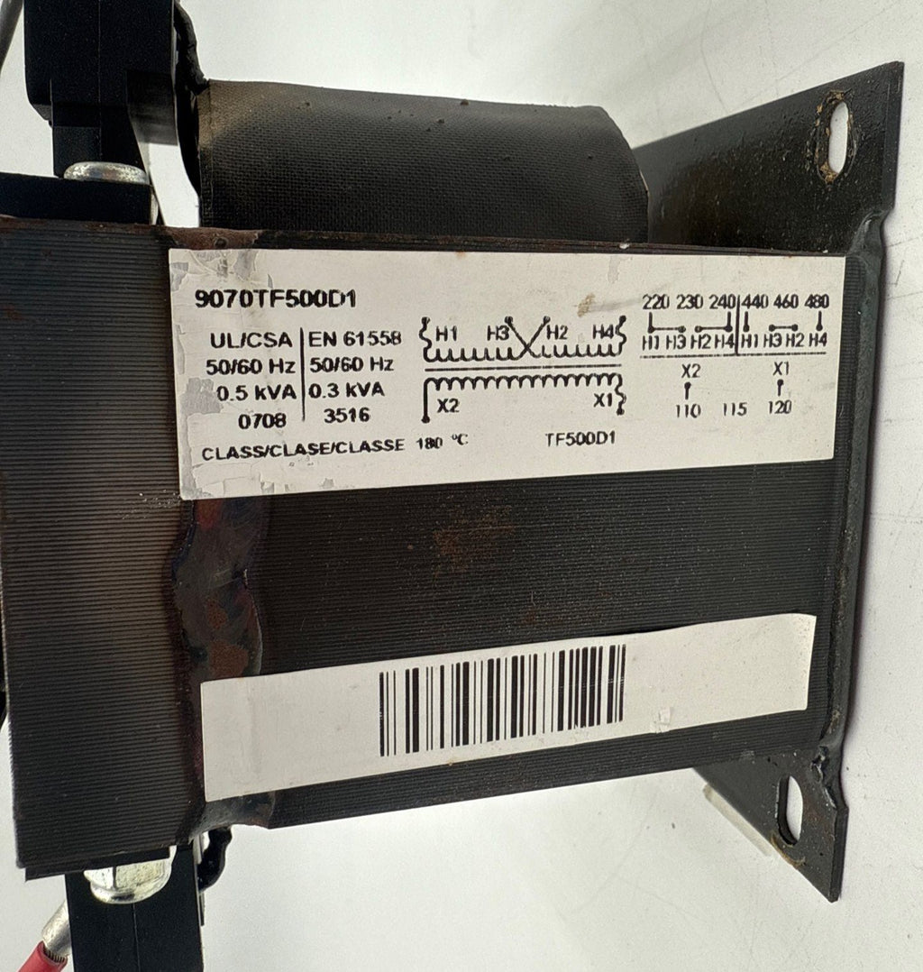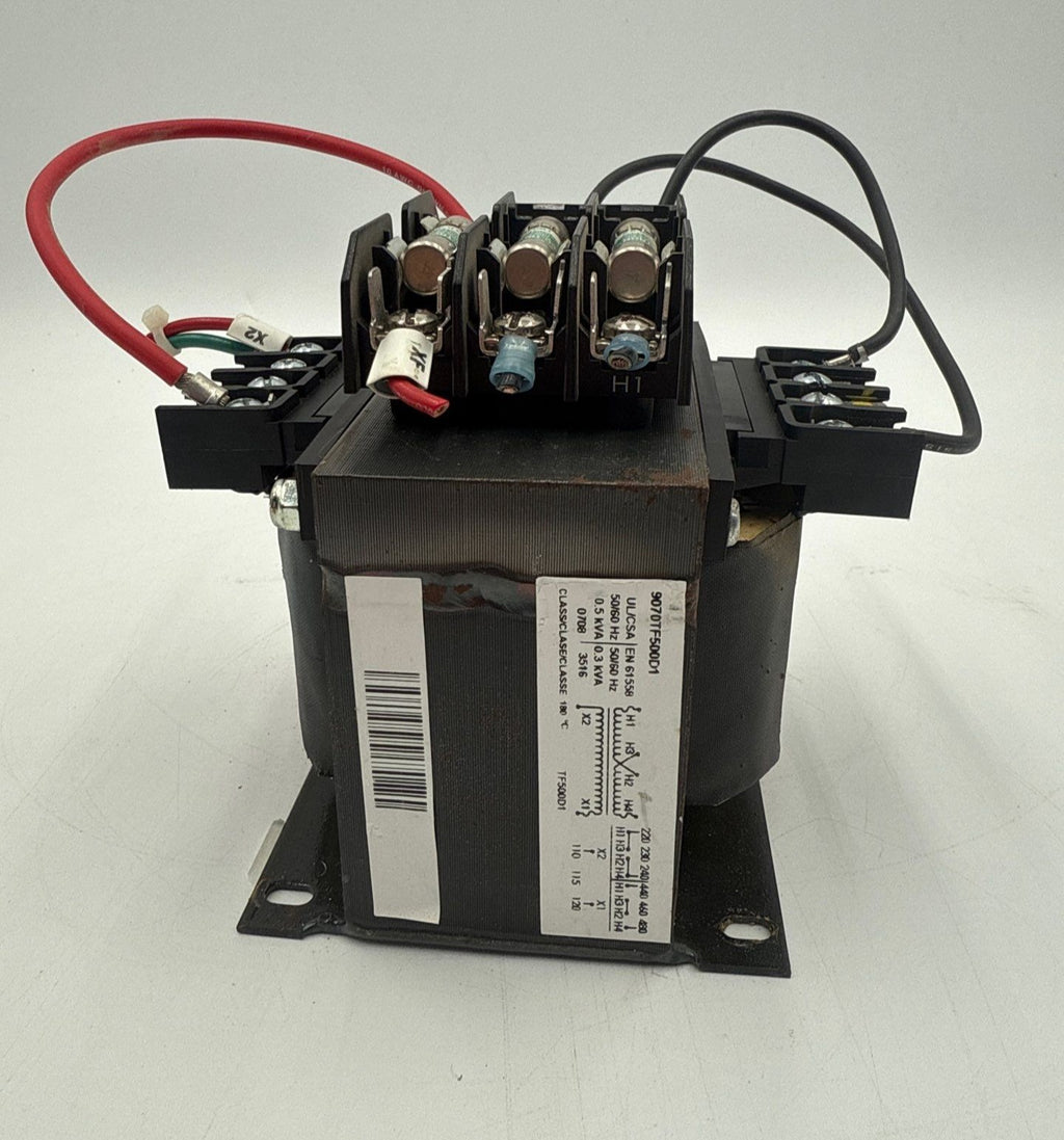 Square D 9070TF500D1 Transformer 0.5KVA Pri 240/480V Sec 120V 1PH w Fuse Block