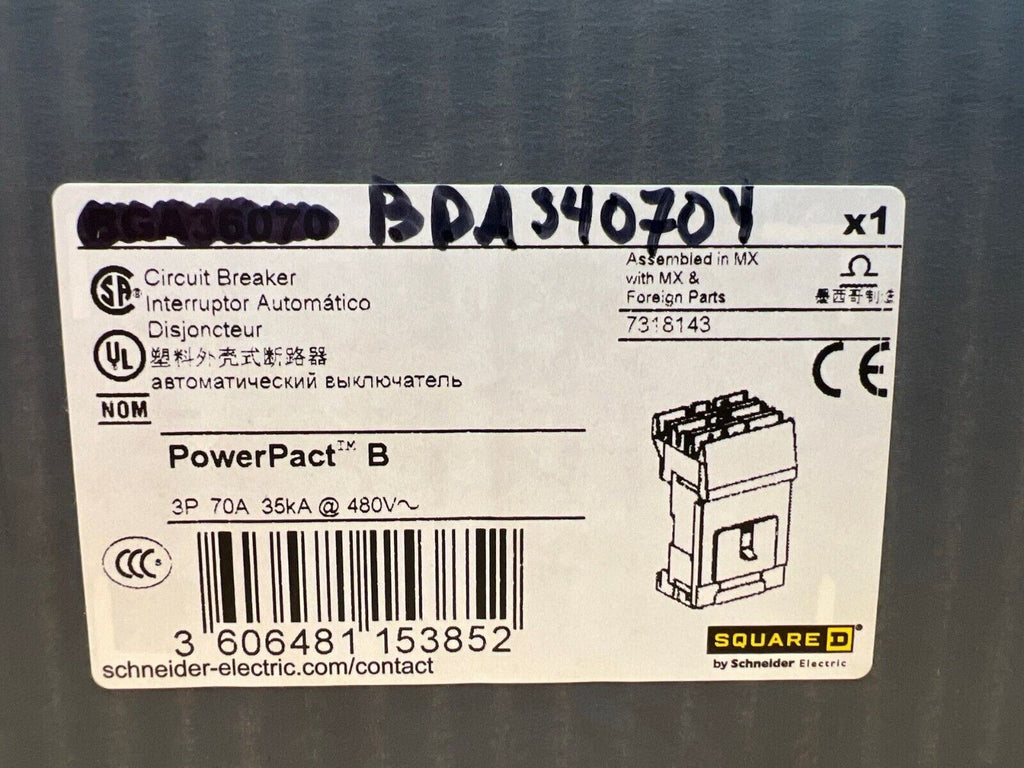 SQUARE D BDA34070Y I-Line Circuit Breaker 70A 3P 480V 3PH BDA 70 Amp 3 Pole