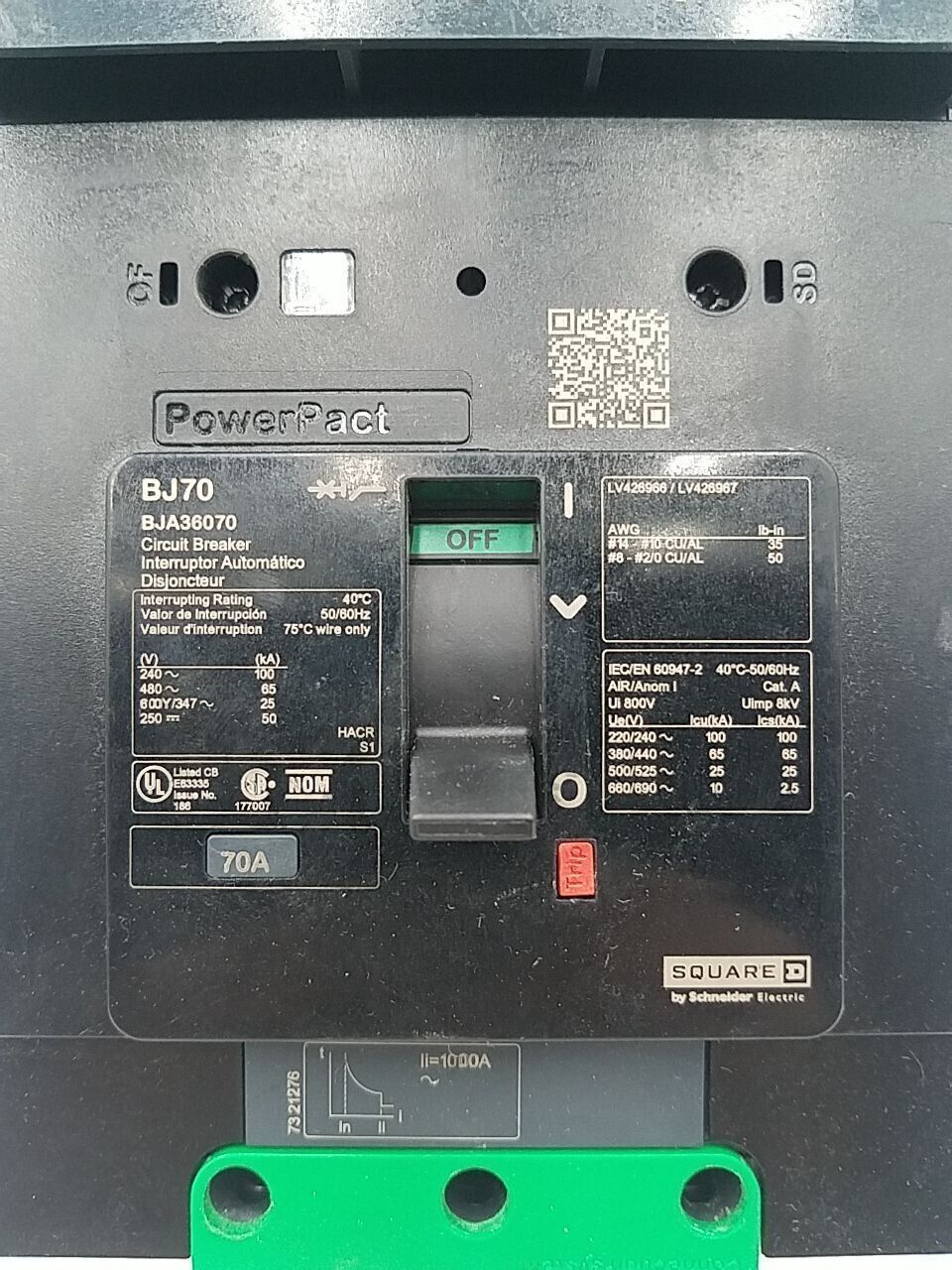 Square D BJA36070 I-Line Circuit Breaker 70A 3P 600V 3PH BJA 70 Amp