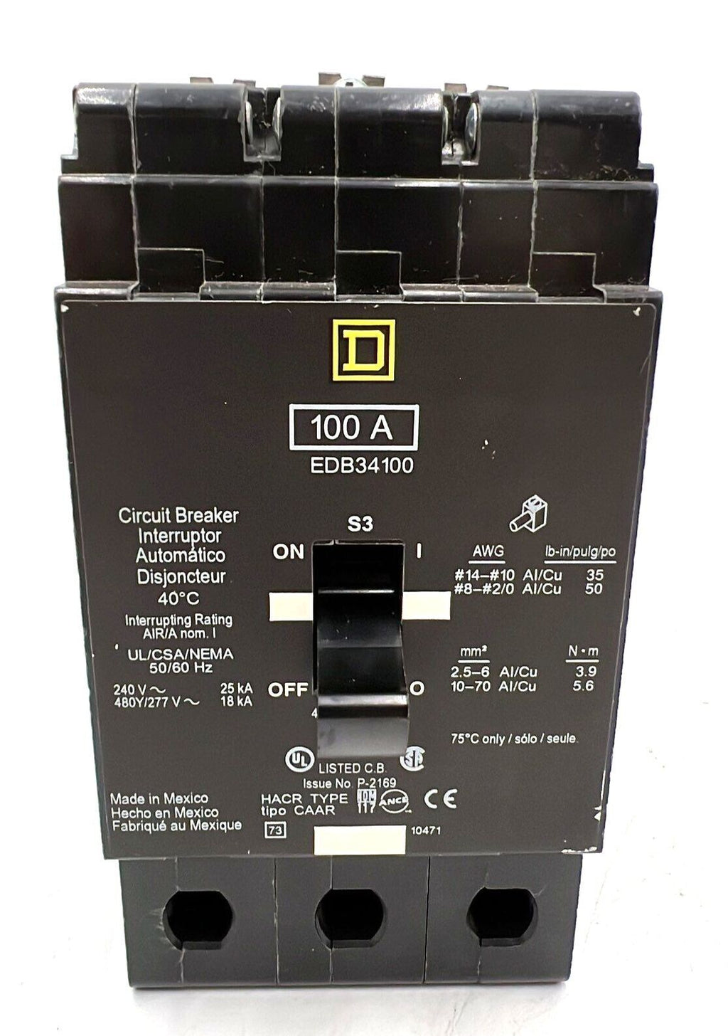 Square D EDB34100 100A 480V 3 Pole Circuit Breaker