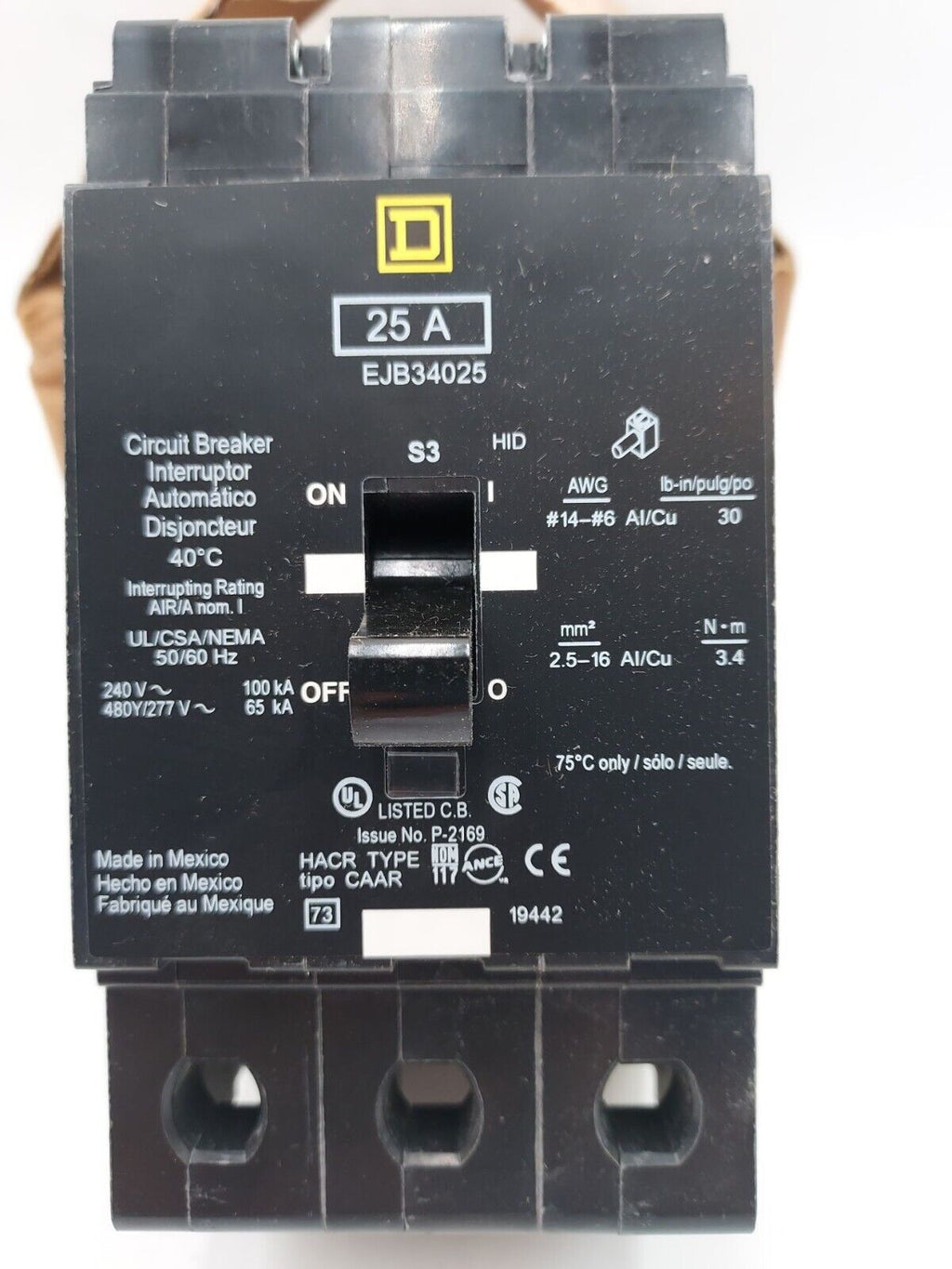 SQUARE D EJB34025 25A 277/480V NEW 3 POLES BOLT ON Please review all pictures carefully.