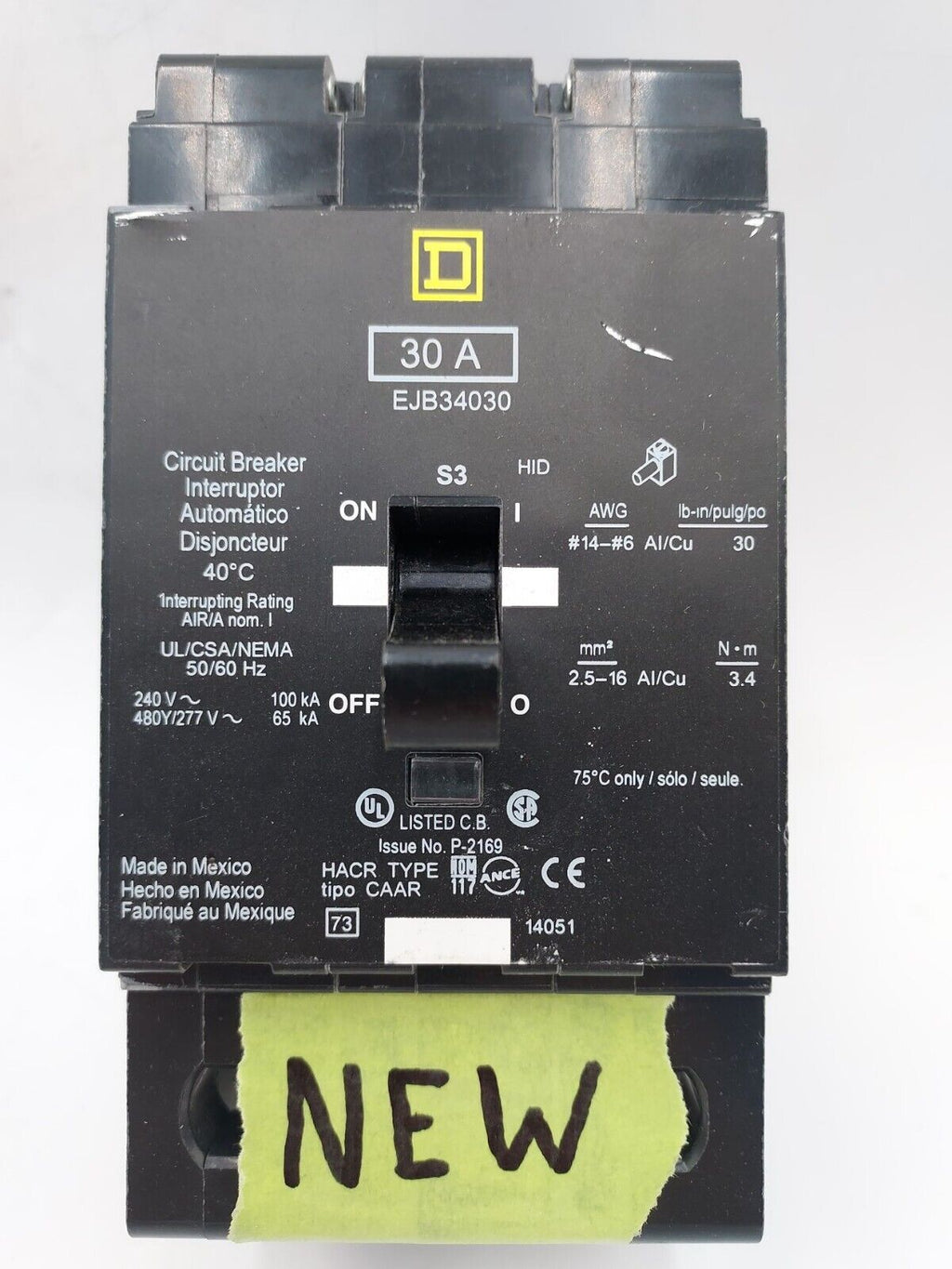 Square D EJB34030 Bolt On Circuit Breaker 30A 3P 277/480V EJB 3 Pole 30 Amp