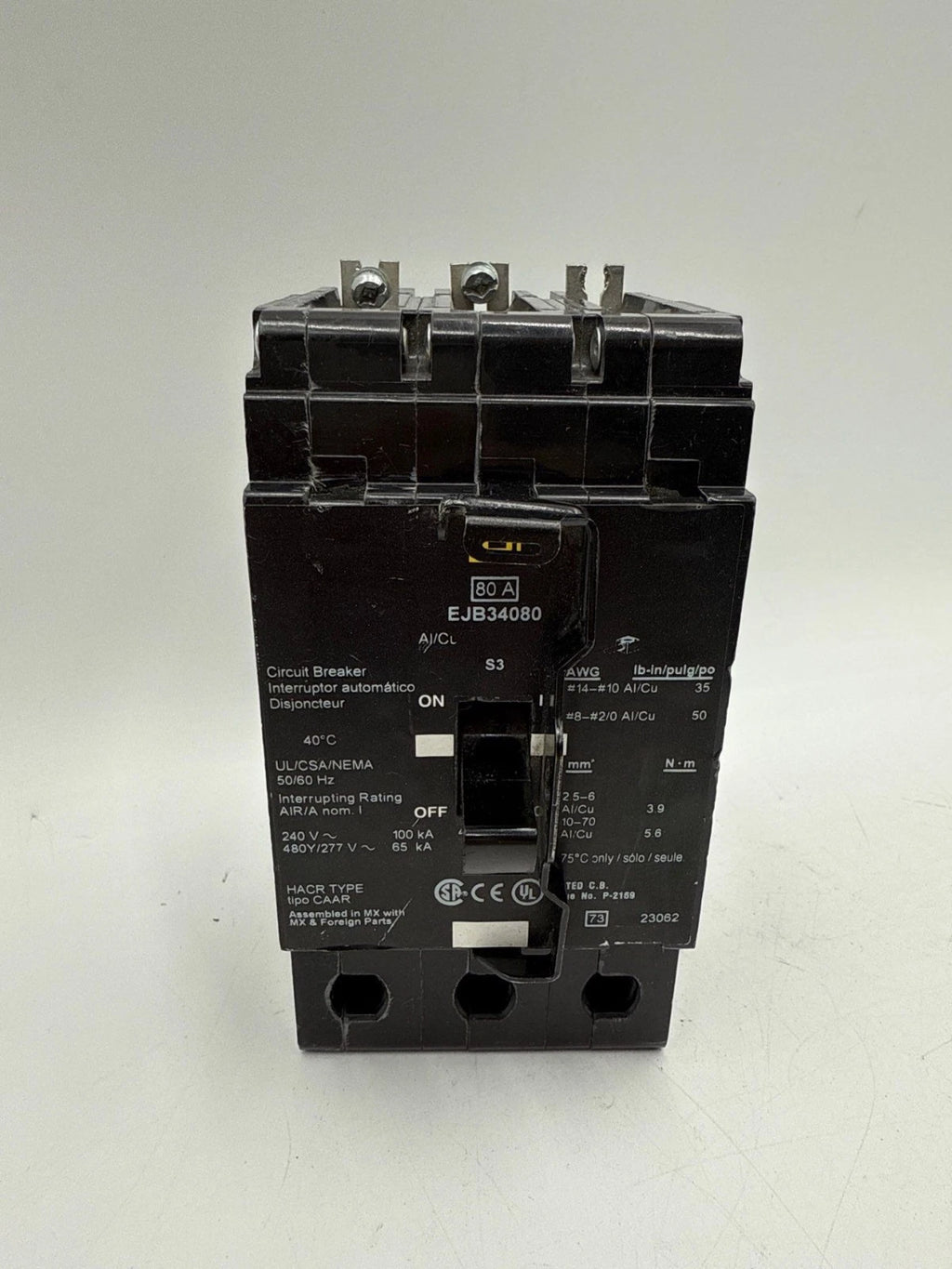 Square D EJB34080 Circuit Breaker 80A 3P 480/277V EJB Bolt On 80 Amp 3 Pole