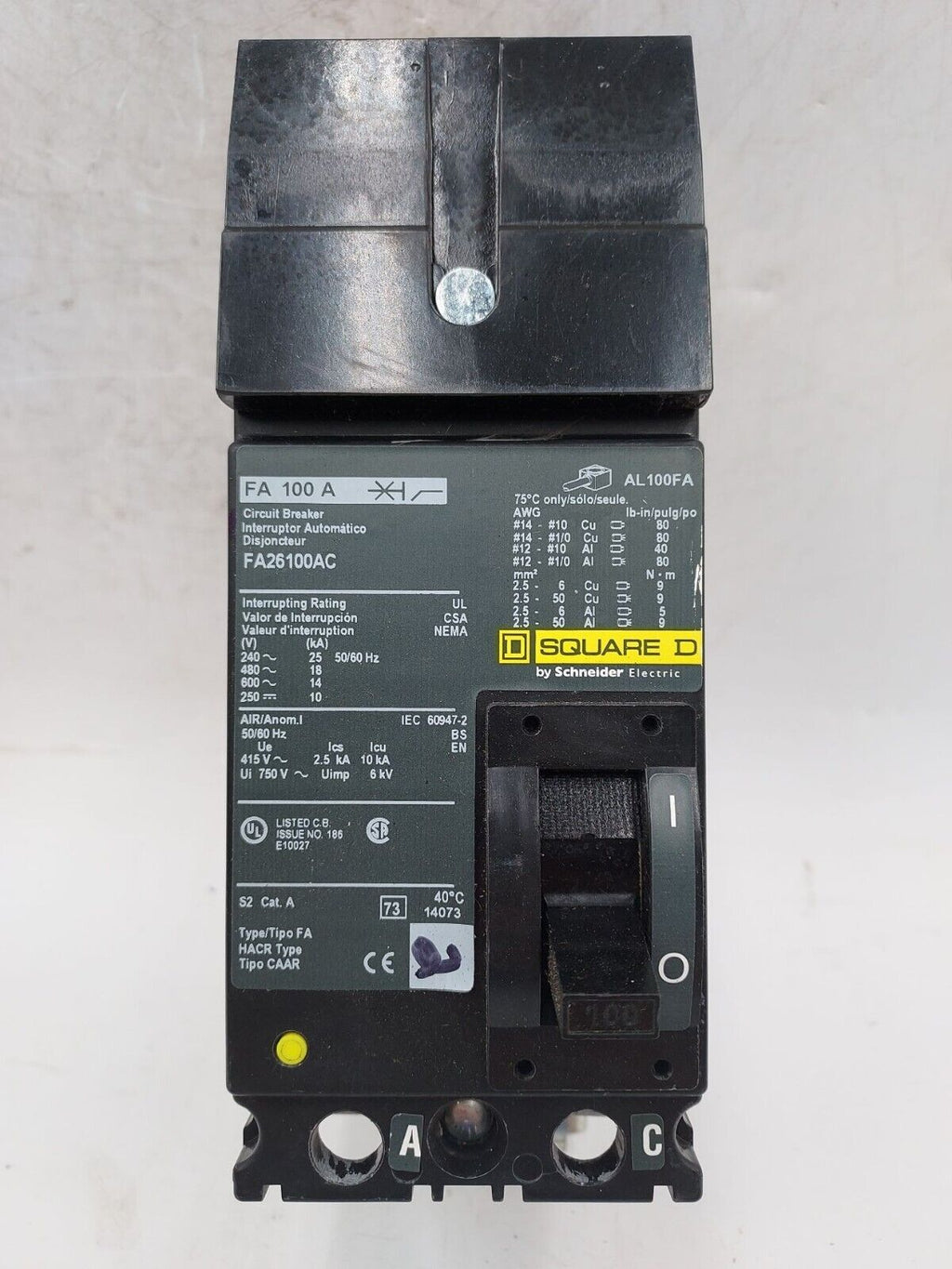 SQUARE D FA26100AC I-Line Circuit Breaker 100A 2P 600V 1PH FA 100 Amp 2 Pole NO DEFECTS!