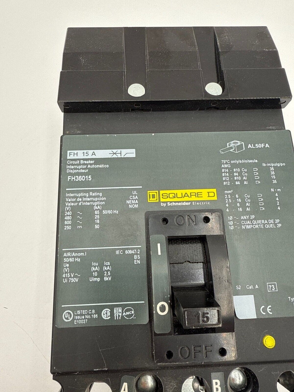 Square D FH36015 I-Line Circuit Breaker 15A 3P 600V 3PH FH 15 Amp 3 Pole