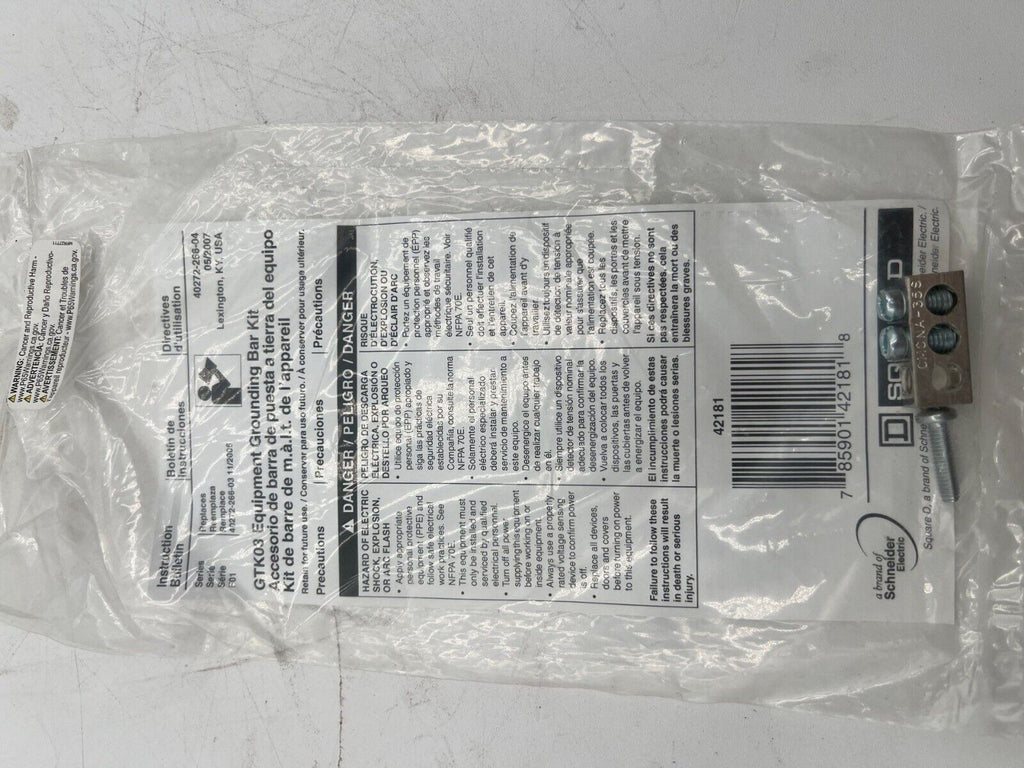 Square D GTK03 Equipment Grounding Bar Kit 60A 240V