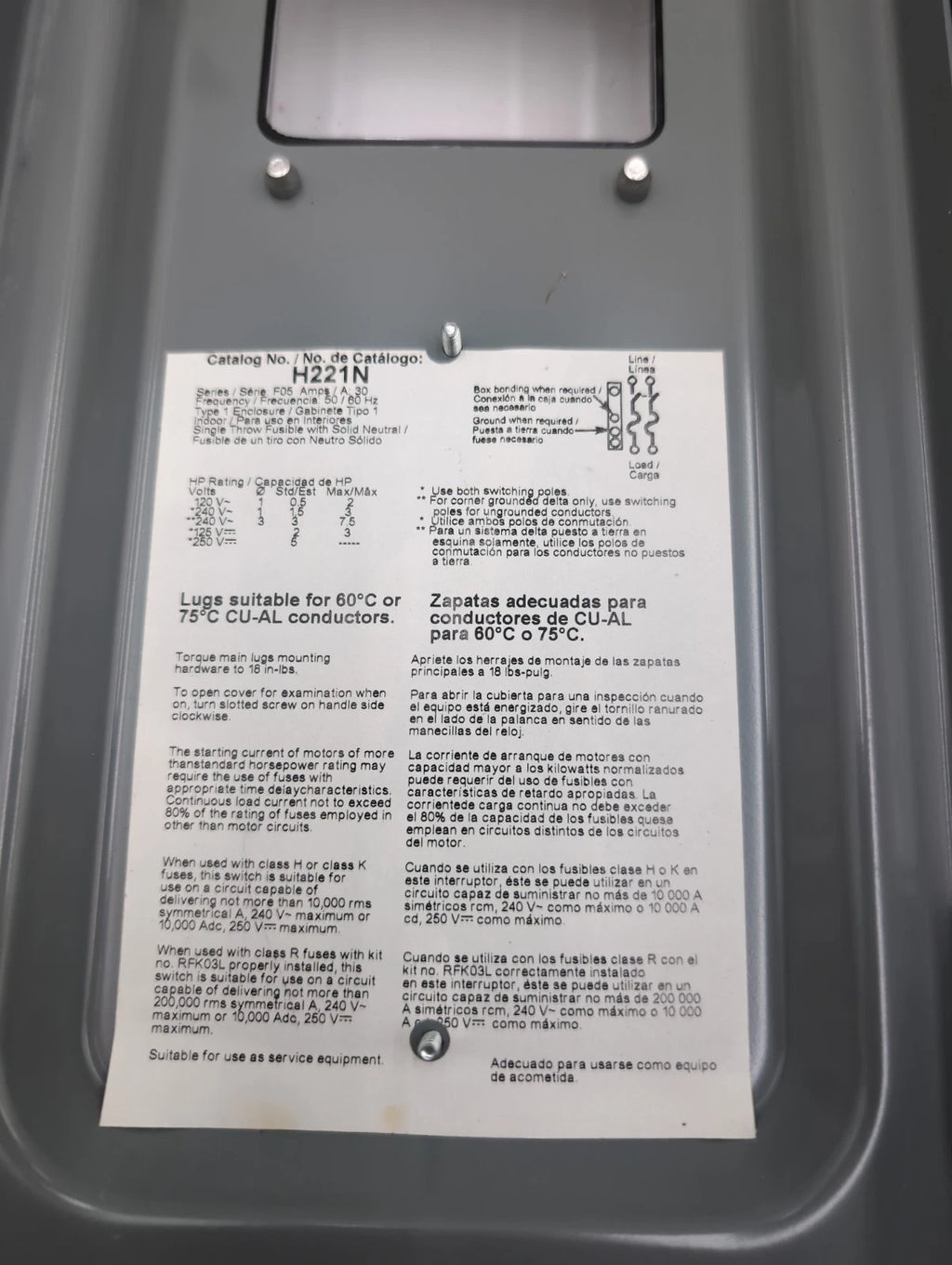 Square D H221N or H221NCLRGLVW Safety Disconnect Switch 30A 2P 240V Type 1 Enclosure with Window NEW