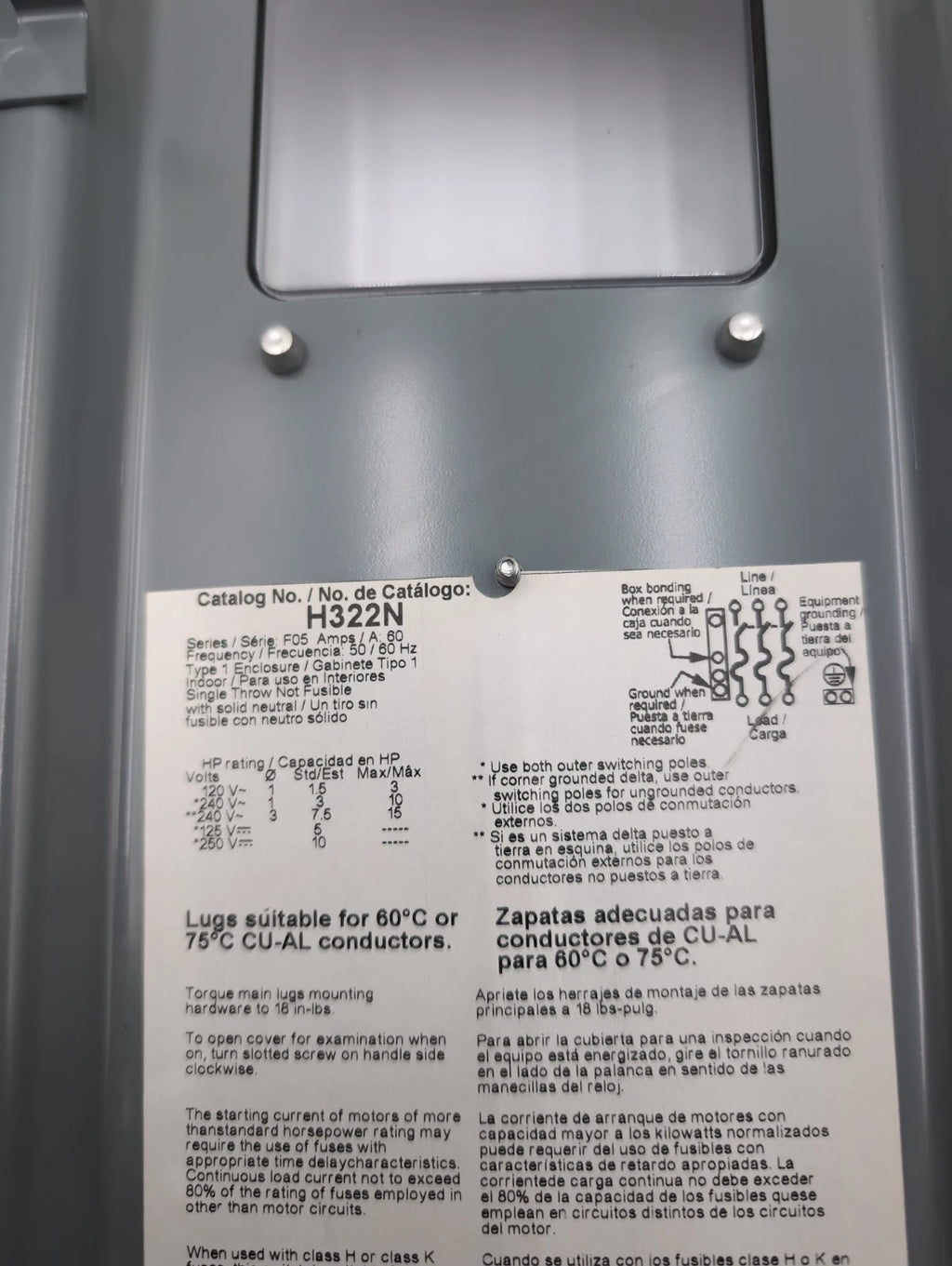 Square D H322N 60 Amp 240V Heavy Duty Safety Disconnect Switch 60A 3P 240V NEMA 1 Indoor
