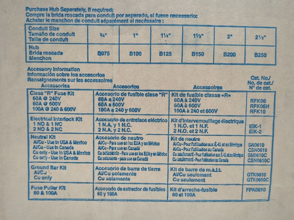 Square D H362RB, 60 Amp, 600 Vac, Type 3R, Heavy Duty Safety Switch