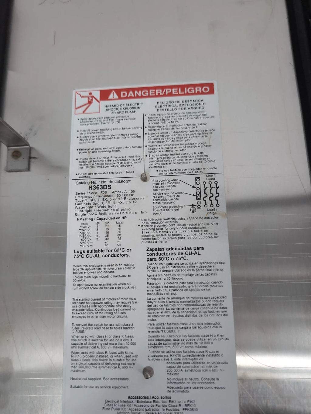 Square D H363DS Heavy Duty Safety Disconnect Switch 100A 3P 600V Stainless Steel NEMA Type 3, 3R, 4, 4X, 5 or 12 Enclosure NEW in Box