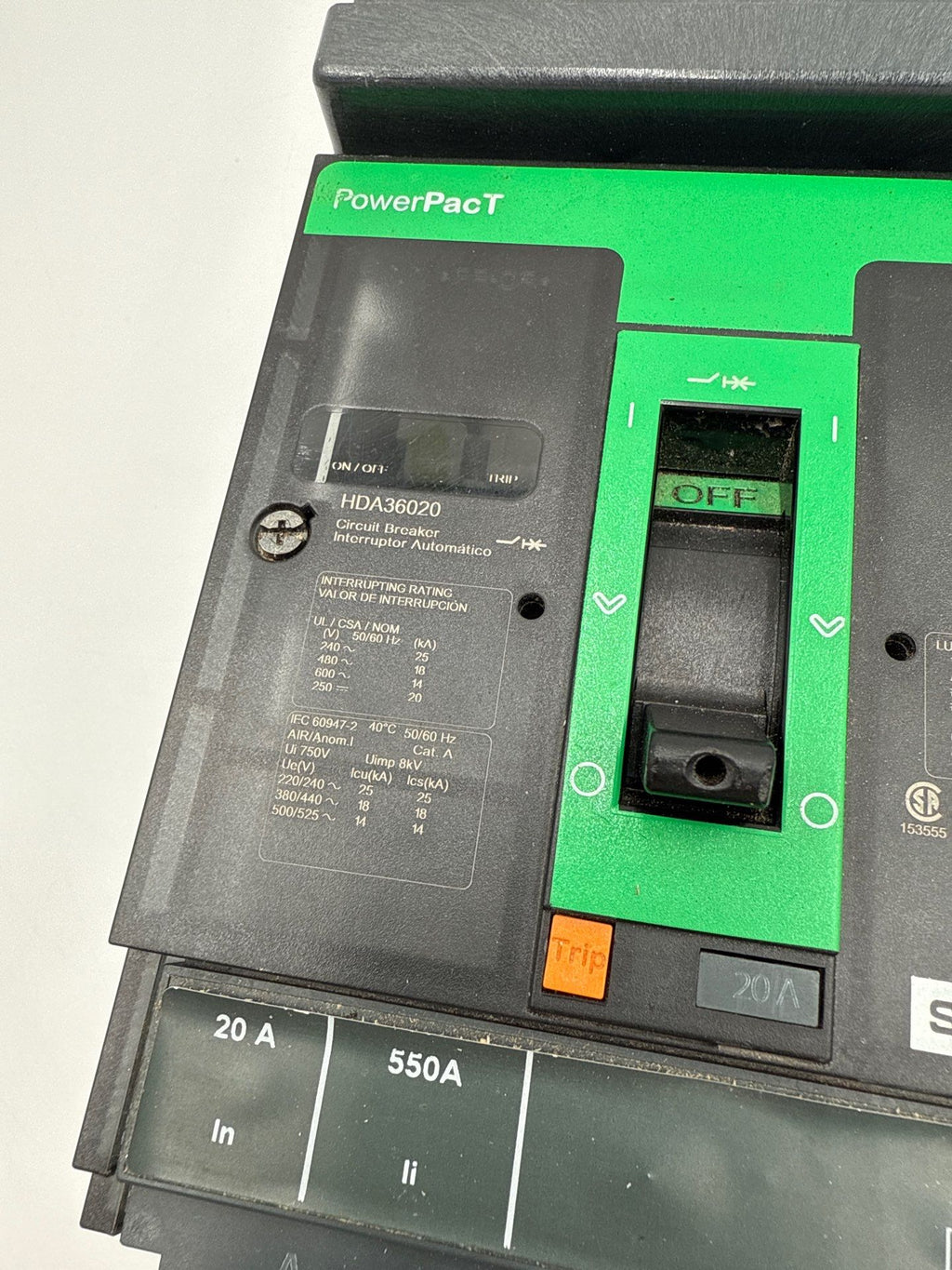 Square D HDA36020 I-Line Circuit Breake 20A 3P 600V 3PH HDA PowerPact 20 Amp 3 Pole