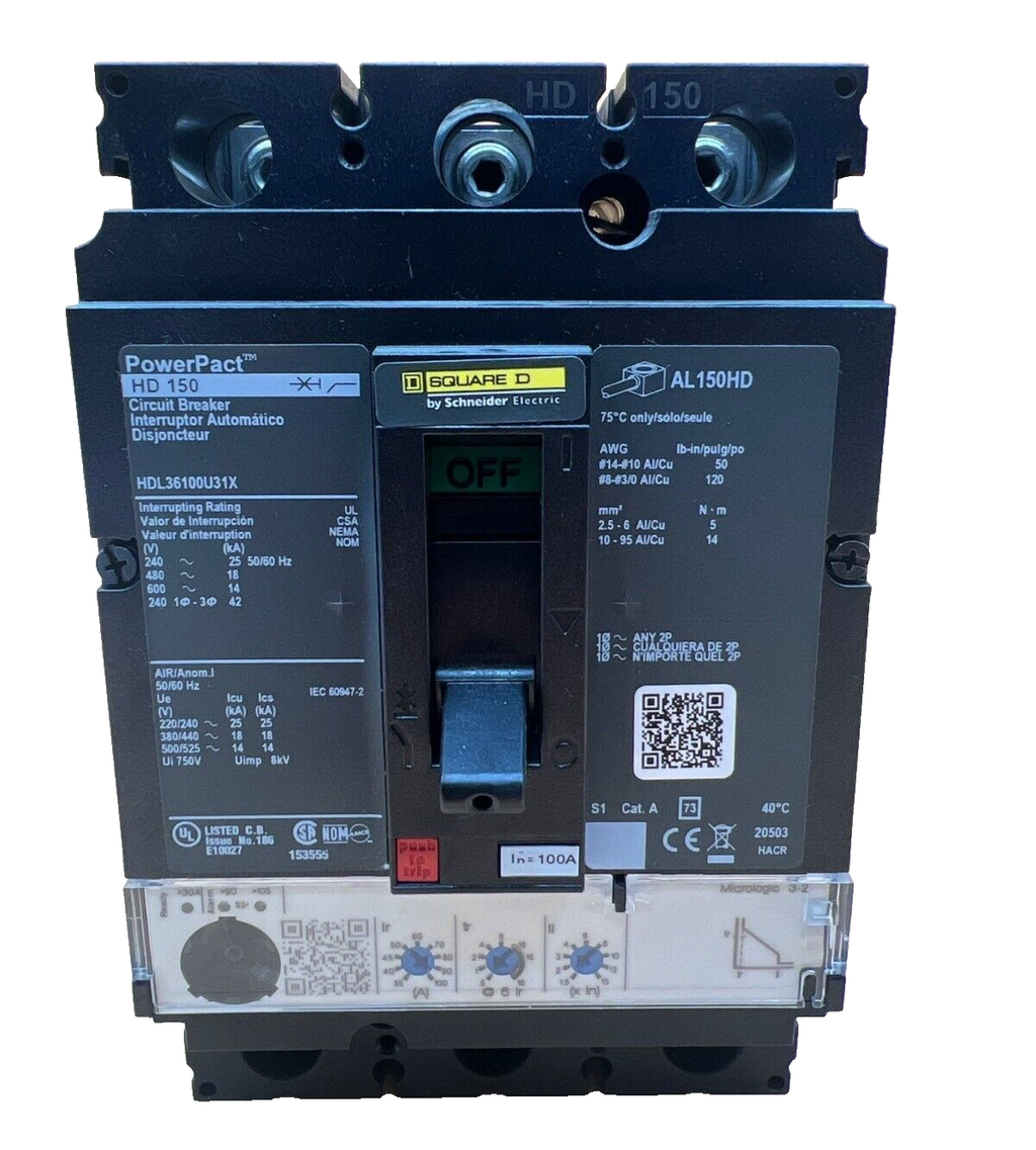 Square D HDL3100U31X 100A 600V 3P Lug to Lug Circuit Breaker