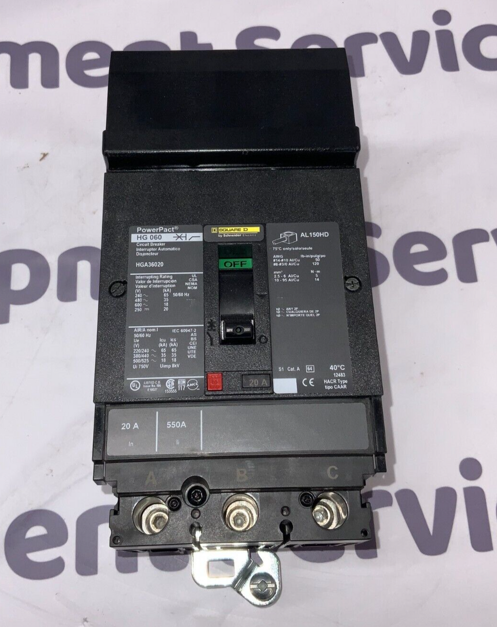 Square D HGA36020 3 pole 20 Amp 600 volt