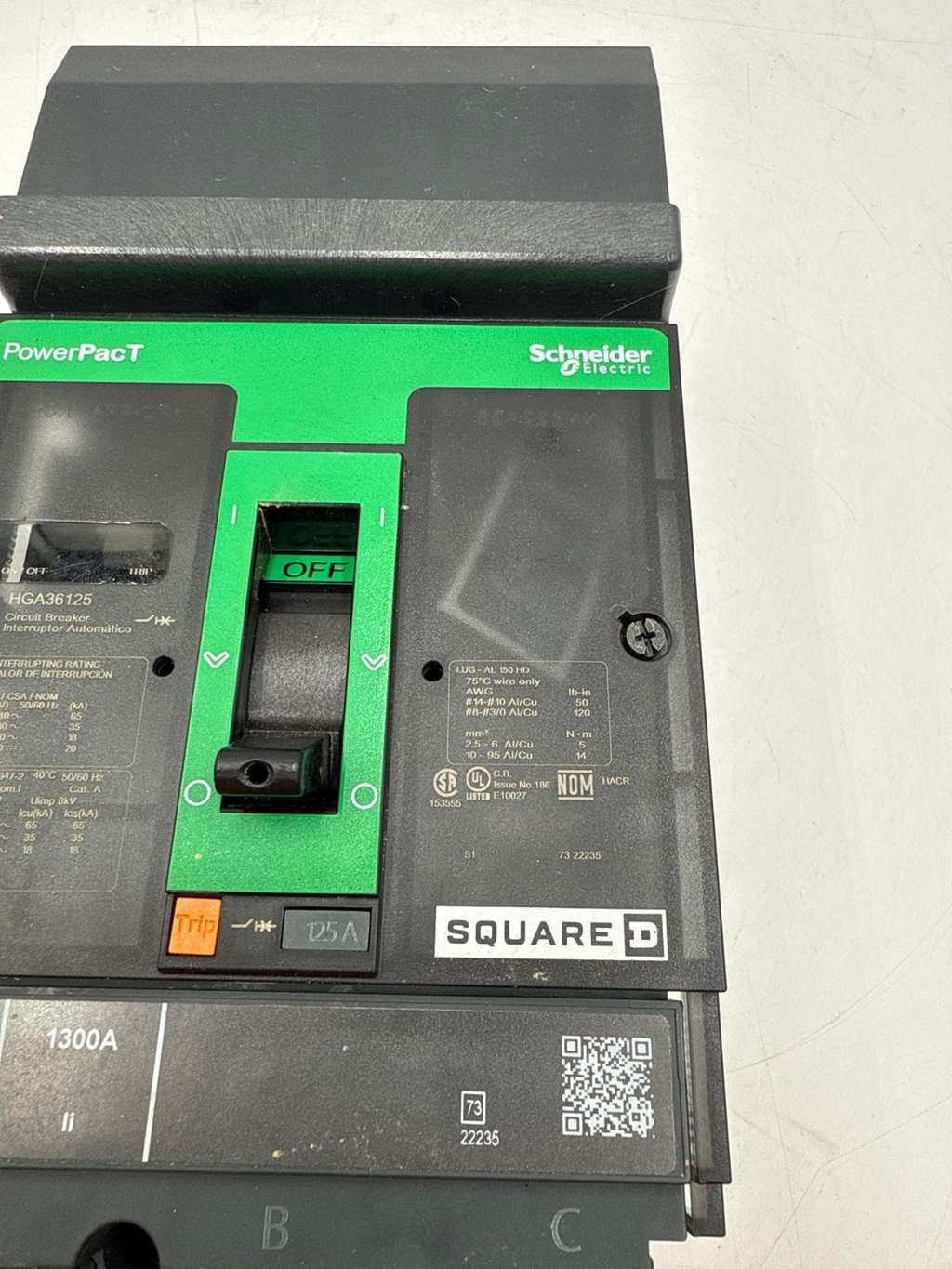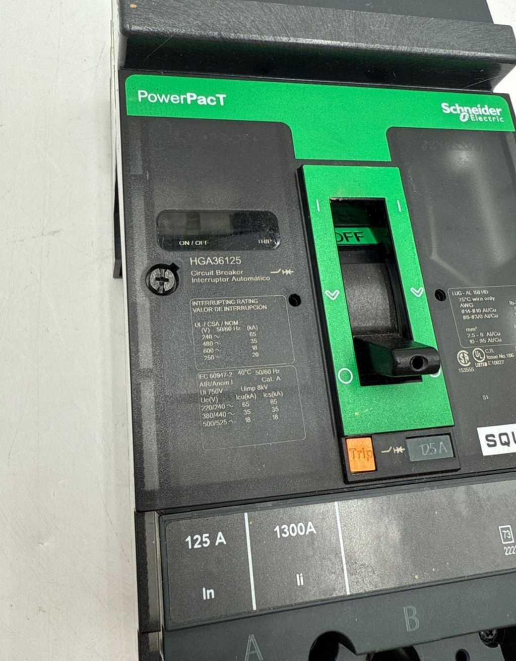 Square D HGA36125 I-Line Circuit Breaker 125A 3P 600V HGA PowerPact 125 Amp