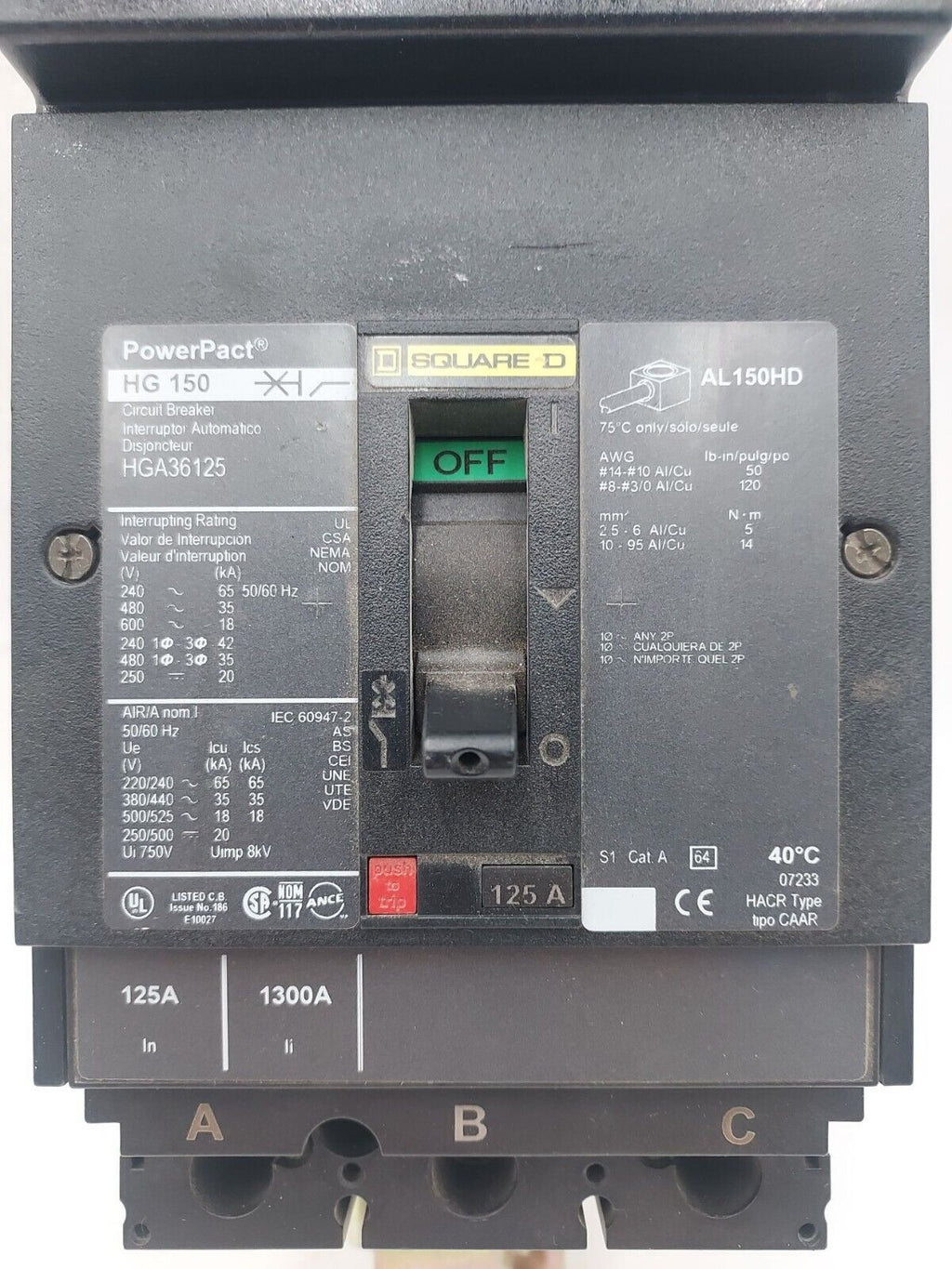 Square D HGA36125 Used