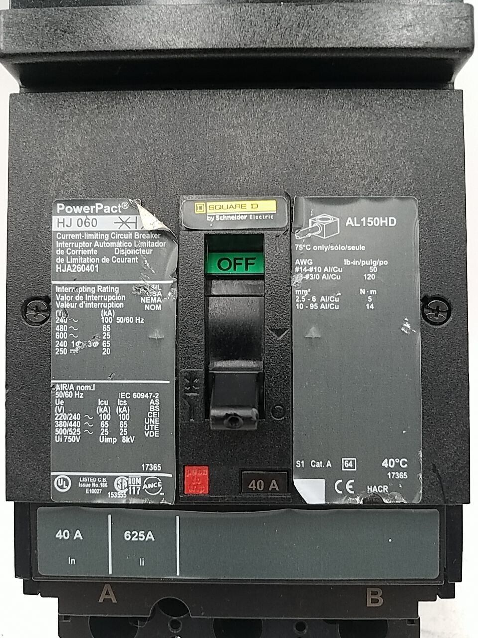 Square D HJA260401 2 pole 40 Amp 600 Volt Circuit Breaker