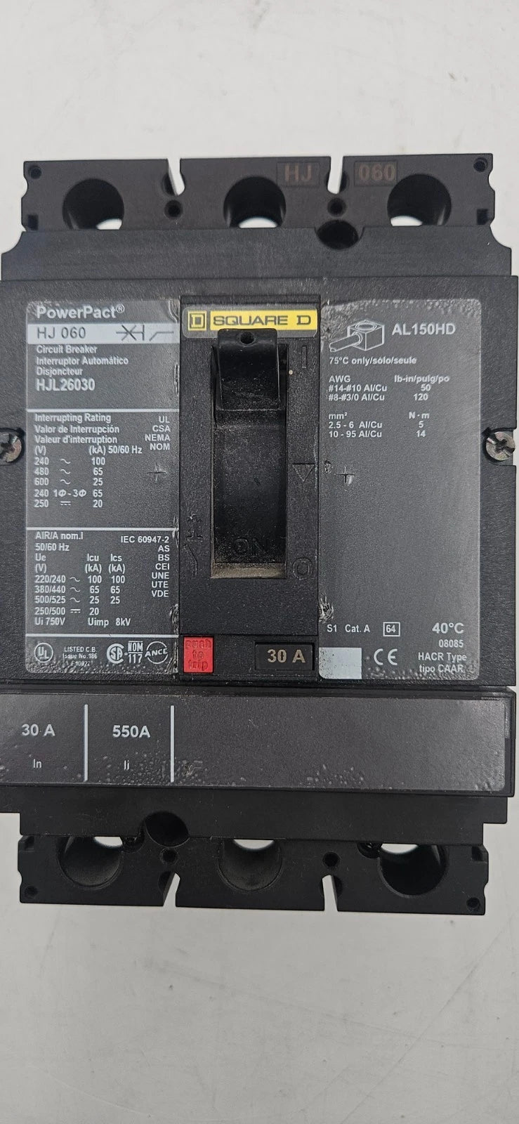 Square D HJL26030 2 Pole 30 Amp 600v Circuit Breaker USED