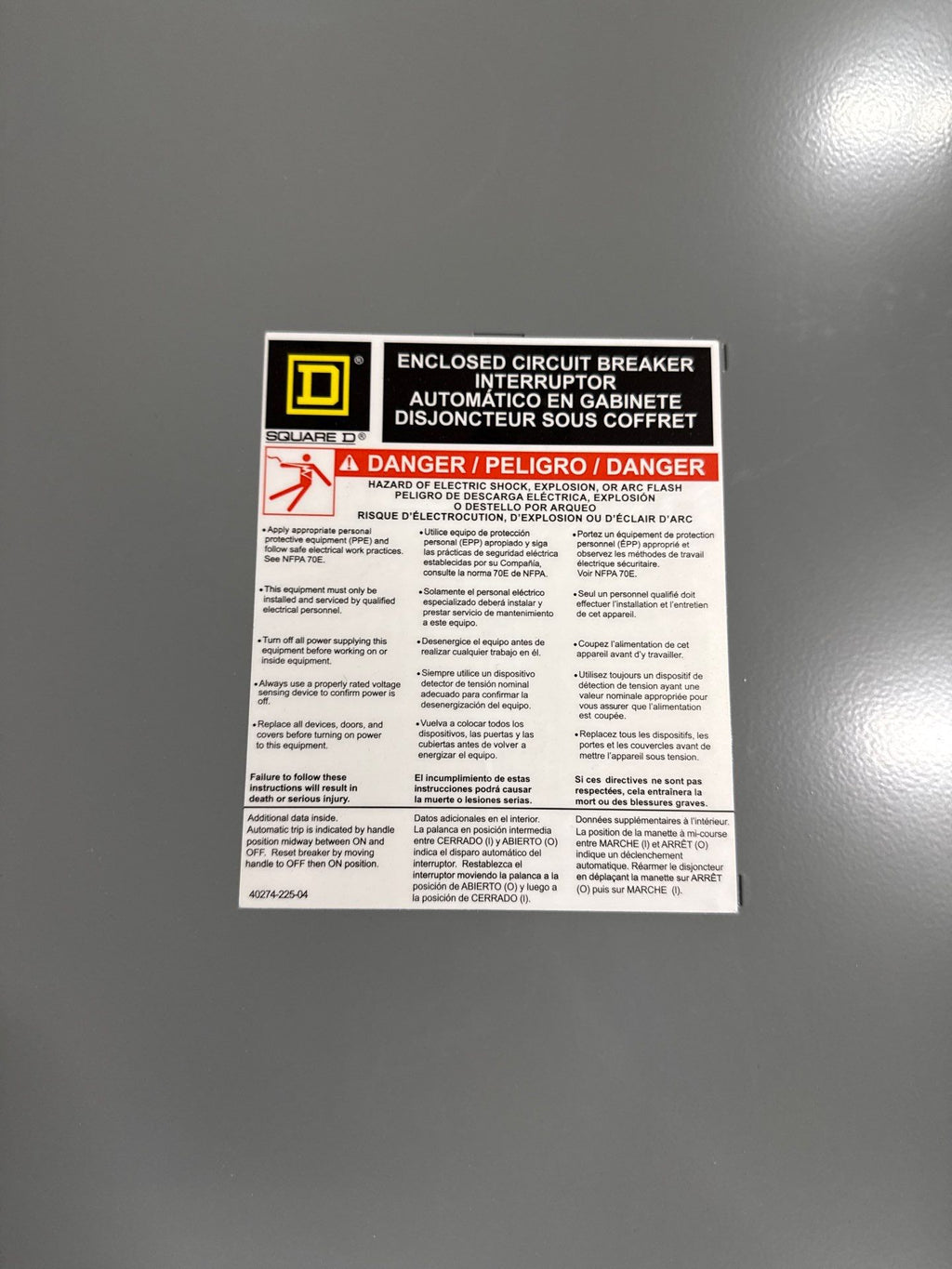 Square D J250F Circuit Breaker Enclosure 250A 600V Flush Mount Type 1 Encl New