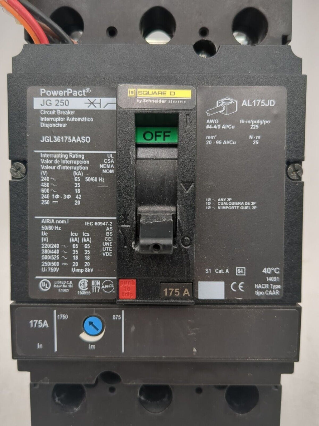 Square D JGL36175AASO Circuit Breaker 175A 3P 600V JGL 175 Amp 3 Pole