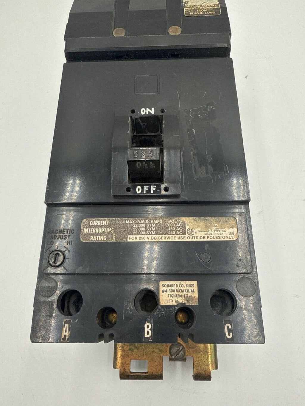 Square D KA36225 3 pole 225 Amp 600 volt