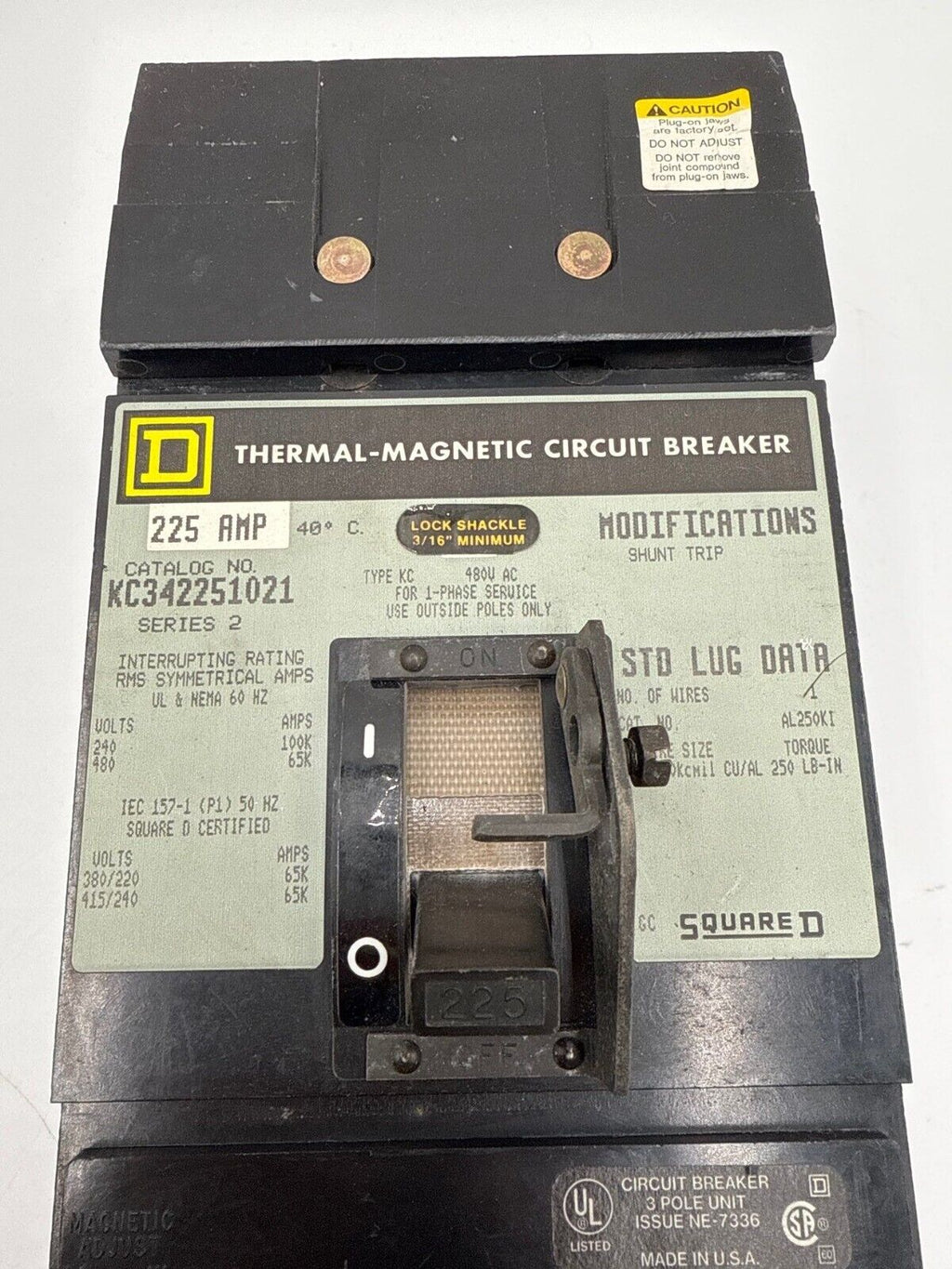 Square D KC342251021 I-Line Circuit Breaker 225A 3P 480V Shunt Trip 120-240V