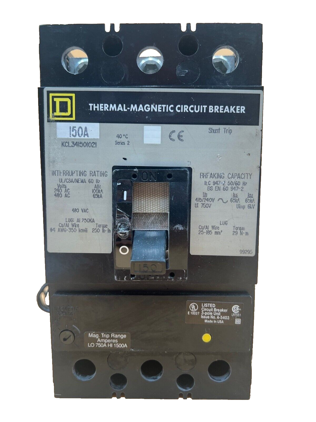Square D KCL341501021 150A 480V 3P Lug to Lug Circuit Breaker
