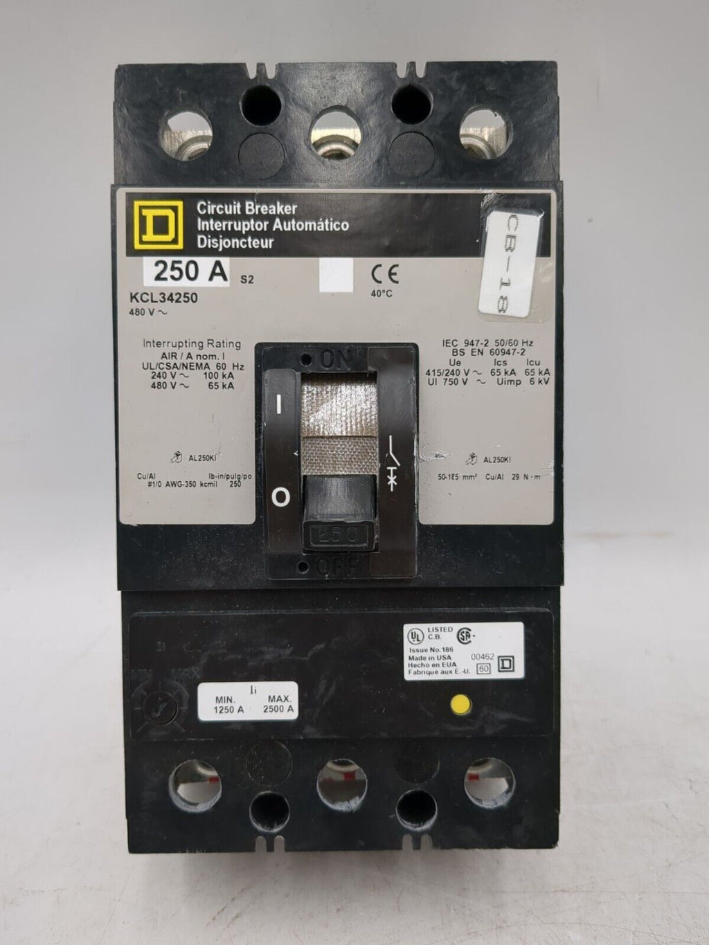 Square D KCL34250 Circuit Breaker 250A 3P 480V KCL 250 Amp 3 Pole 3PH