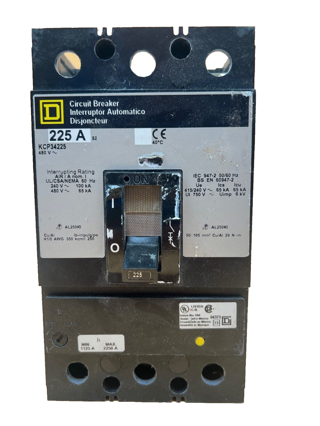 Square D KCP34225 225A 480V 3P Lug to Lug Circuit Breaker