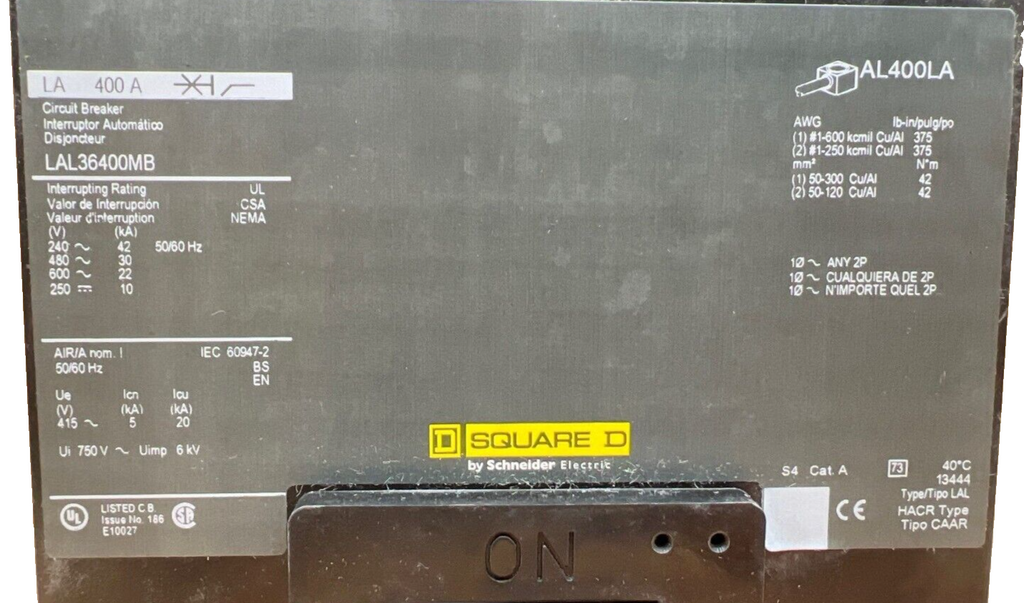 Square D LAL36400MB 400A 480V 3P Lug to Lug Circuit Breaker