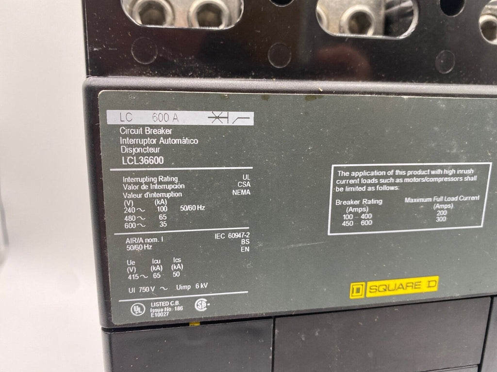 Square D LCL36600 Circuit Breaker 600A 3P 600V 3PH LCL Bolt On NEW