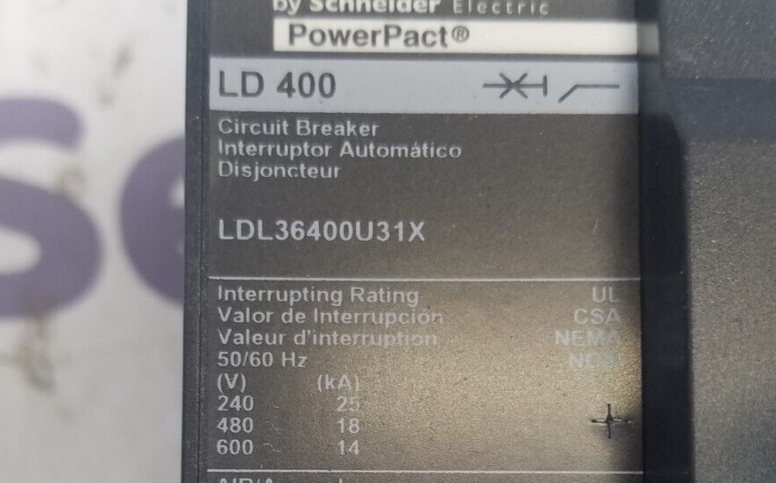 Square D LDL36400U31X 3 pole 400 Amp 600 volt
