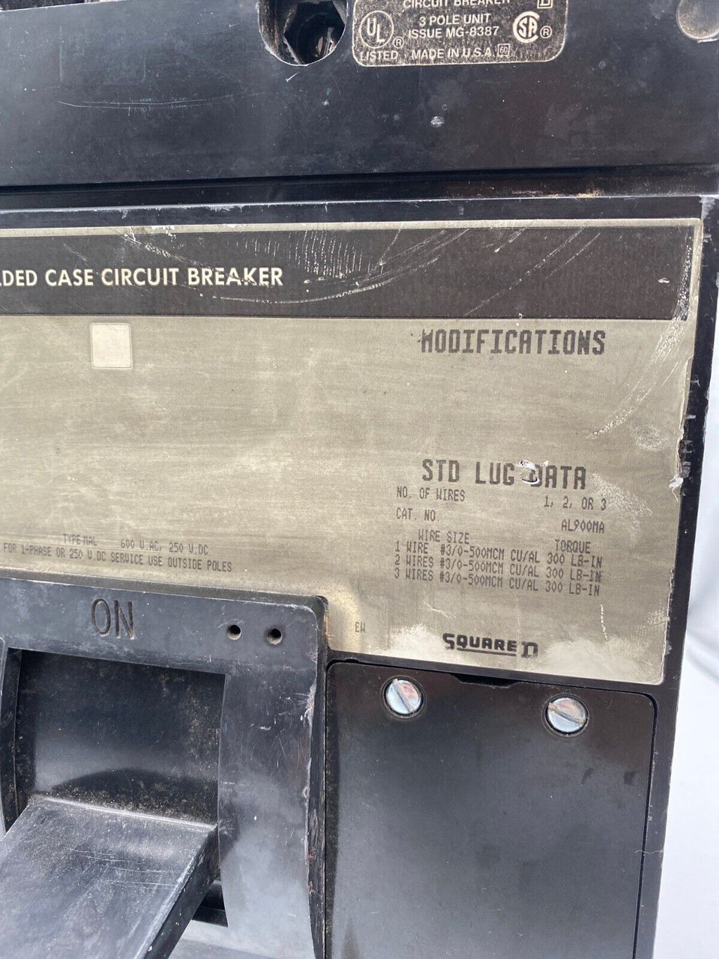 Square D MAL36600 Circuit Breaker 600A 3P 600V 3PH MAL Bolt On