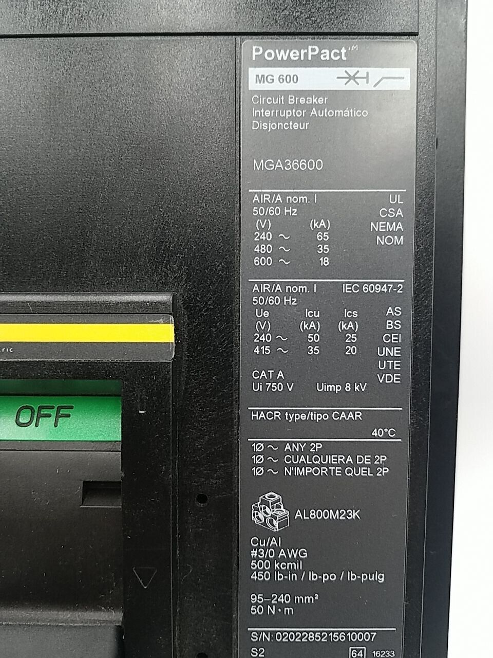 Square D MGA36600 I-Line Circuit Breaker 600A 3P 600V MGA 600 Amp 3 Pole