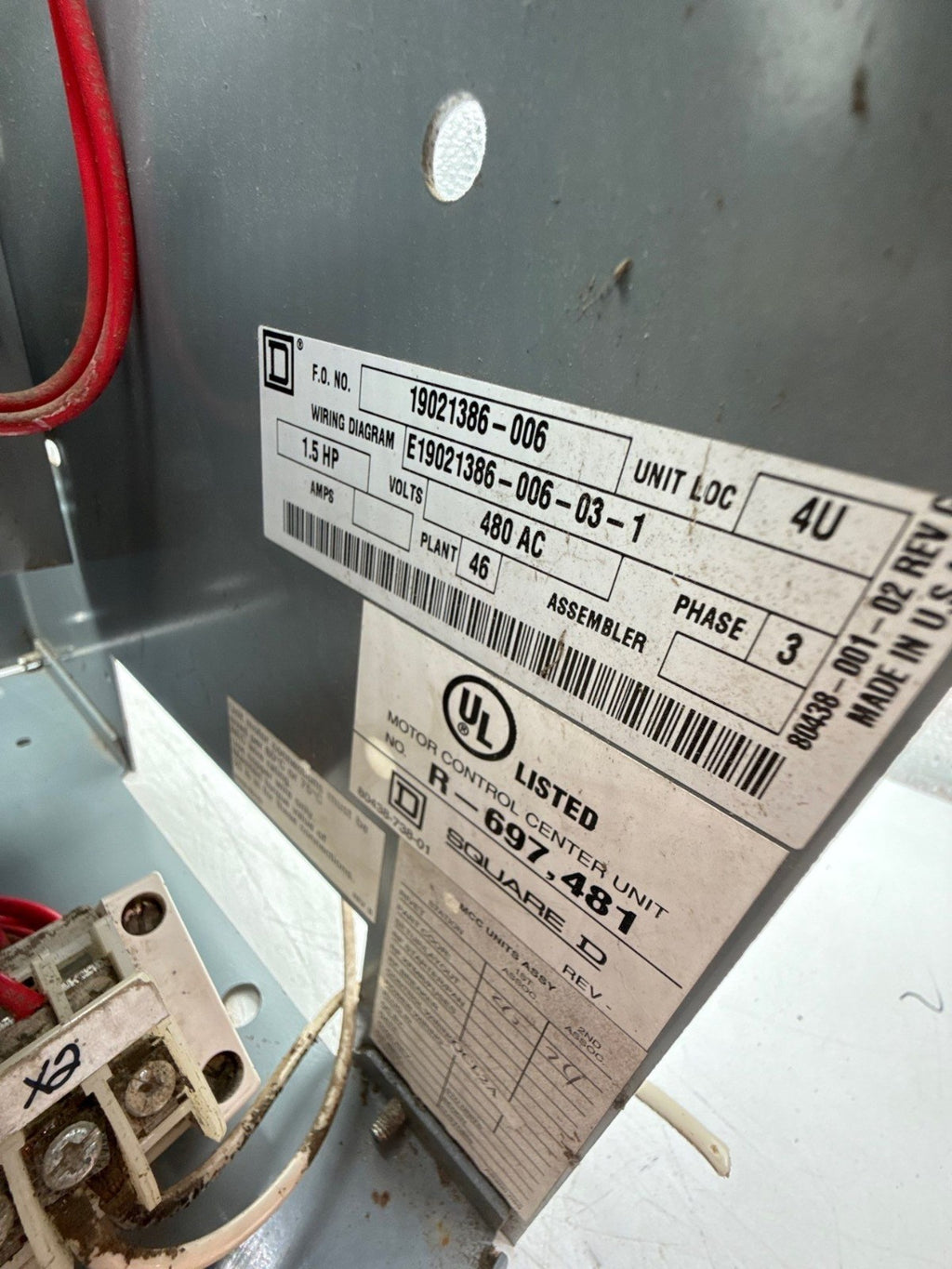 Square D Model 6 12" 7A Combo MCC Bucket Size 1 Starter