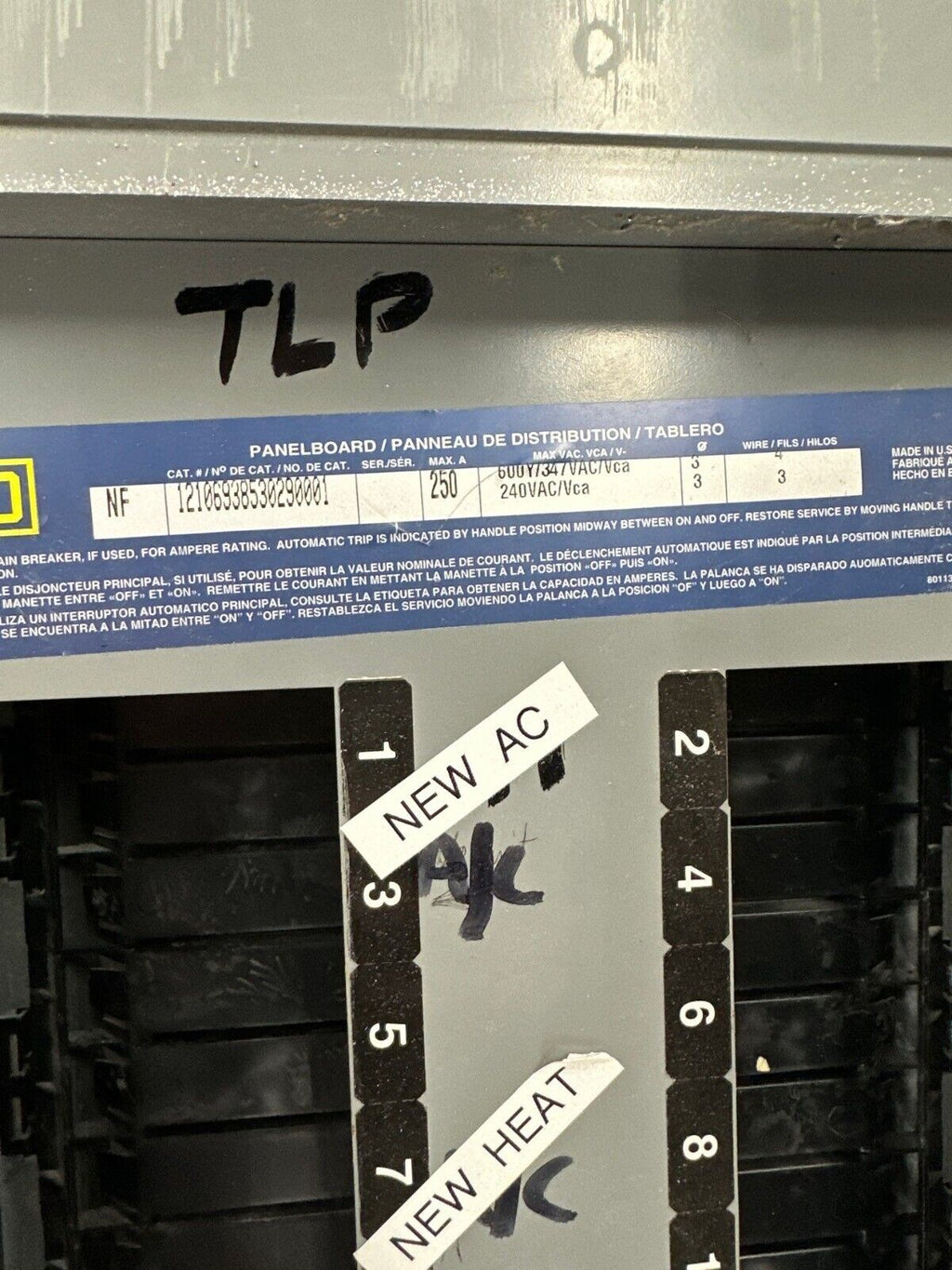 Square D NF Panelboard 250A 600Y/347V 240V 3PH 4W 42 Cir Box MH44 250 Amp Box: 44" x 20" x 6