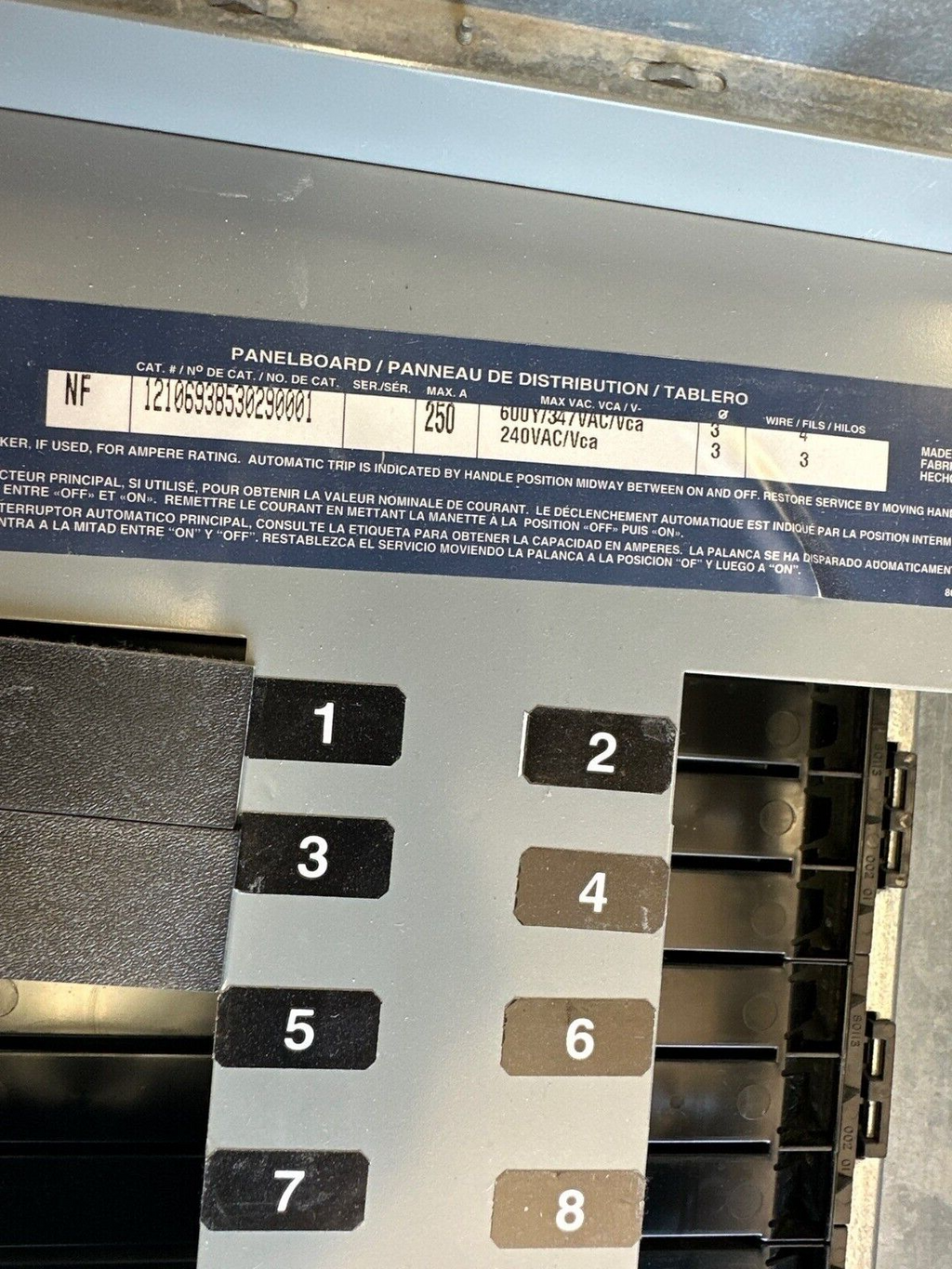 Square D NF Panelboard 250A 600Y/347V 3PH 4W Indoor Encl Main Lug 42 Circuit MLO P328 Used