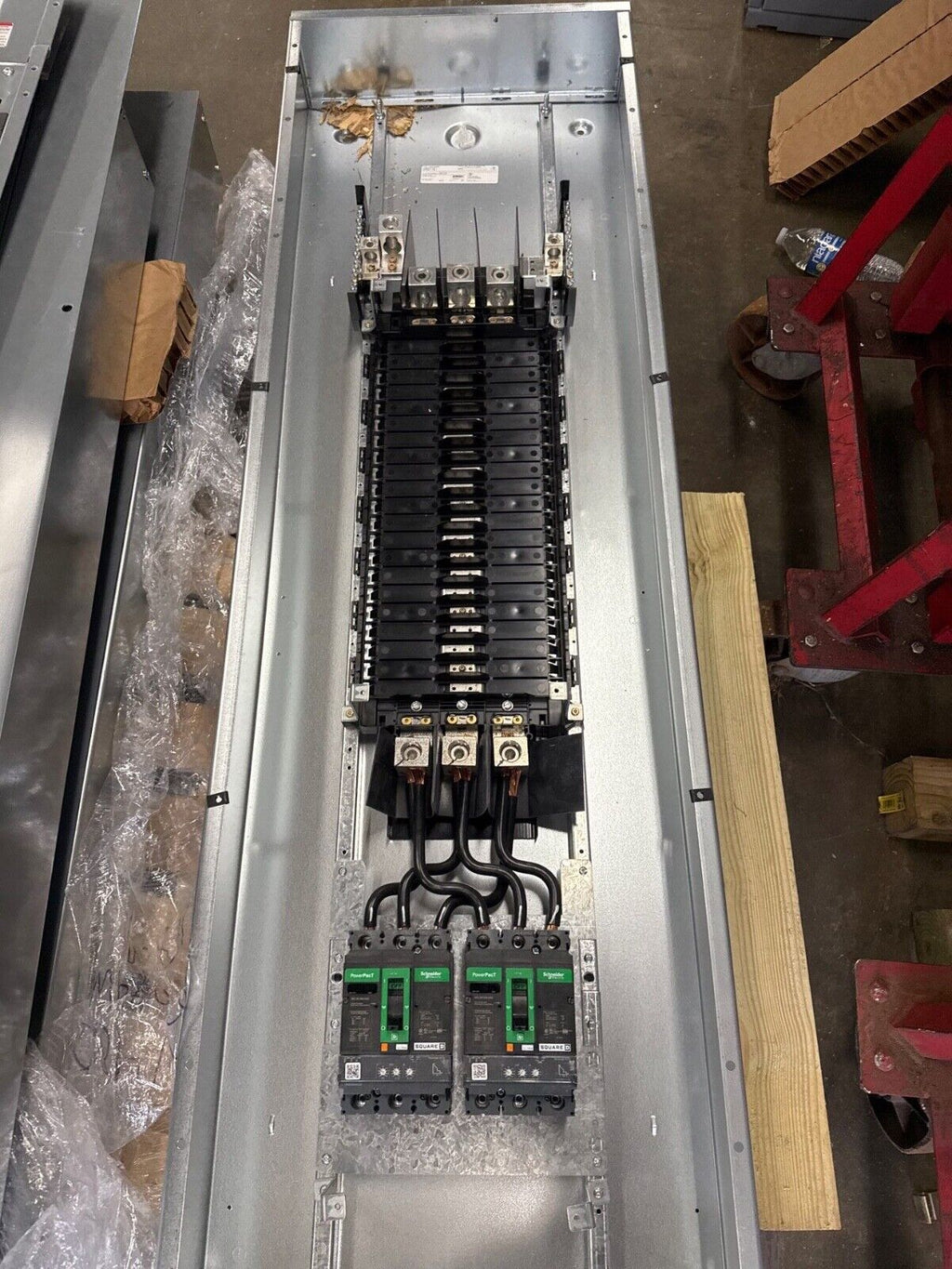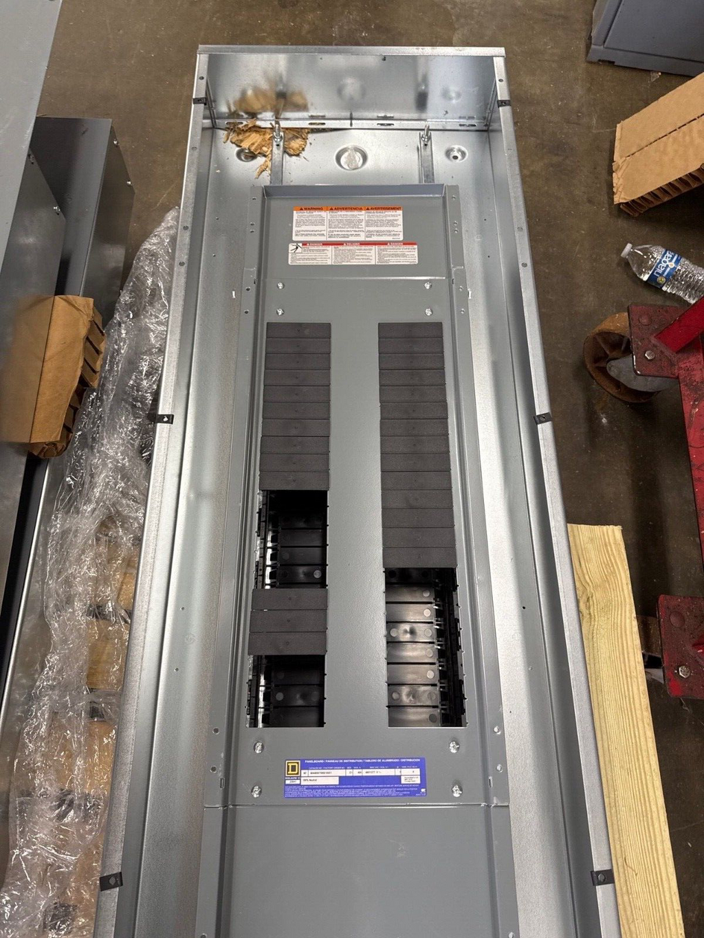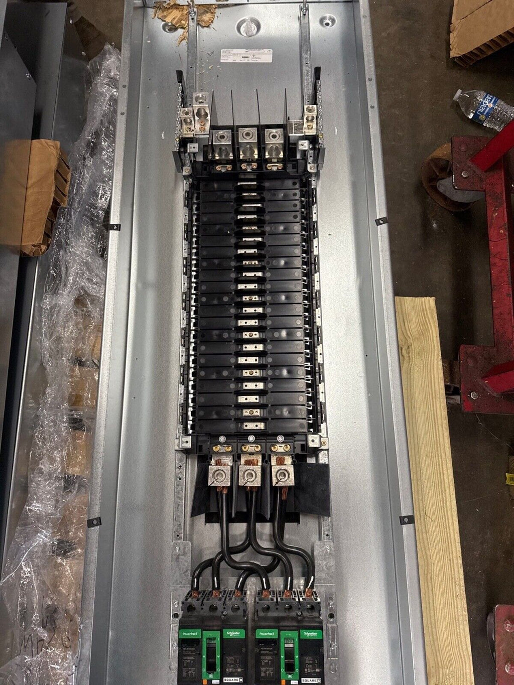 Square D NF Panelboard 400A 480Y/277V 3PH 4W 42 Cir Indoor Encl MLO Main Lug Panel 2qty Subfeed breakers: HDL36150U33X Box MH74: 74" x 20" x 6"