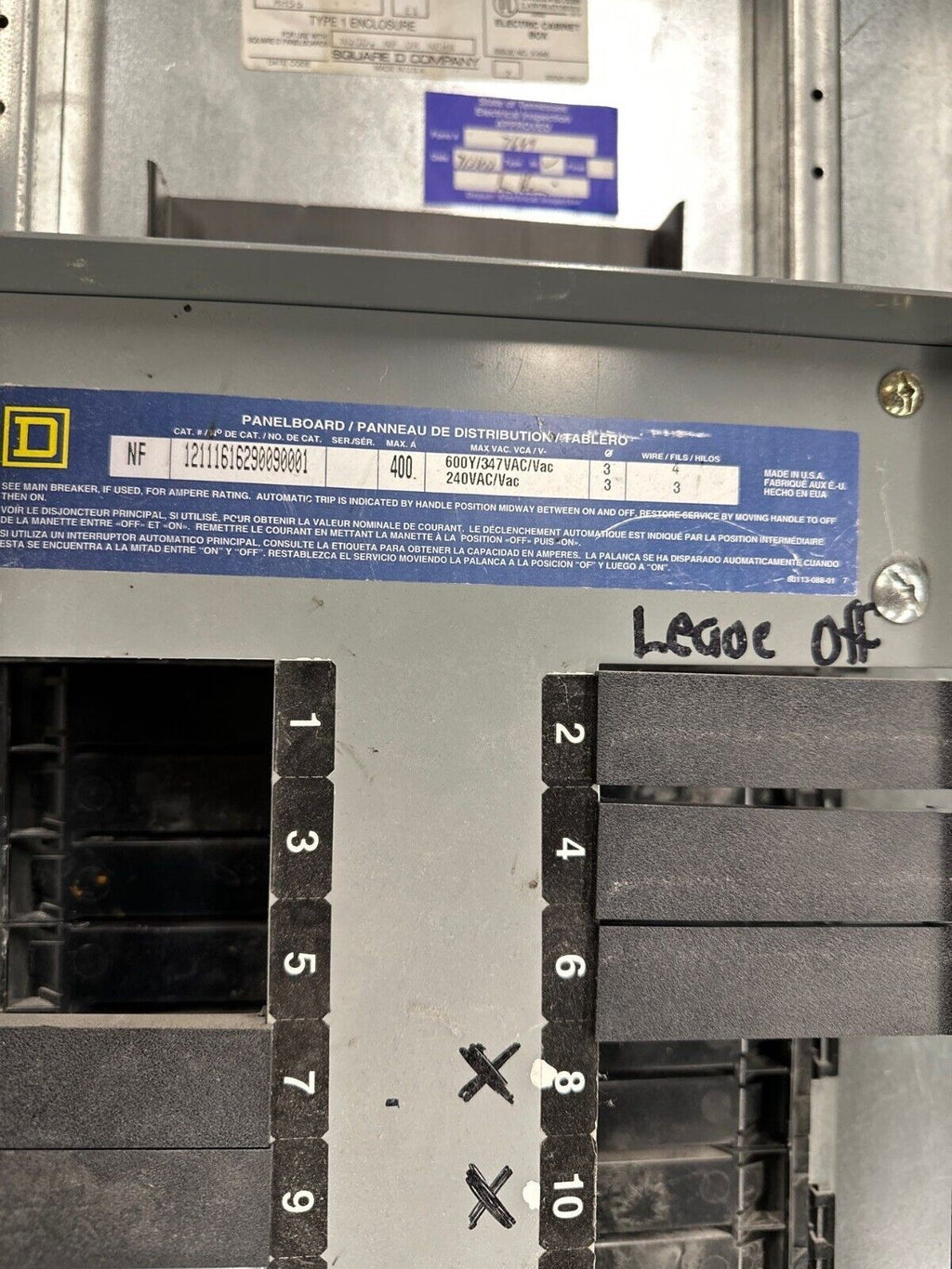 Square D NF Panelboard 400A 600Y/347V 3PH 4W MLO 42 Cir Main Lug Indoor Encl P373 Used
