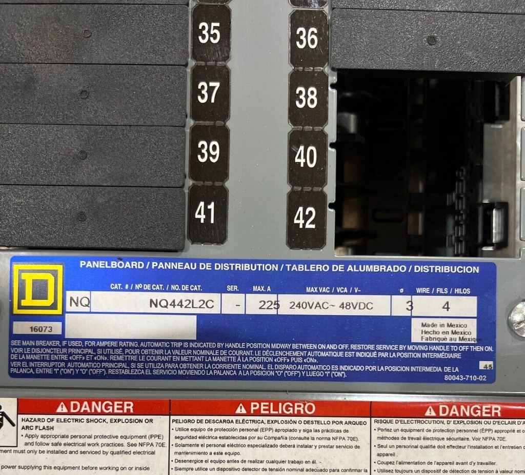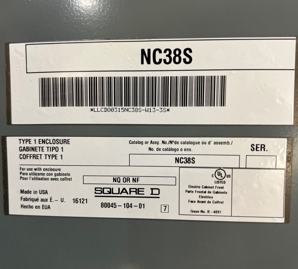 Square D NQ NQ442L2C Panelboard 225A 240V 3PH 4W Indoor Encl 42 Circuit MLO Box MH38BE: 38" x 20" x 6" P622