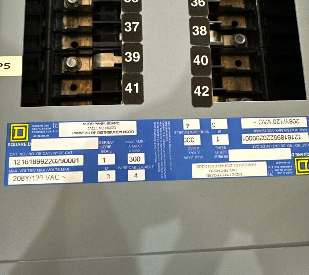 Square D NQOD Panelboard 300A 208Y/120V 3PH 4W 42 Circuit 300 Amp MCB NO MAIN Used