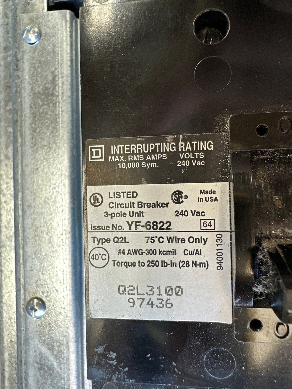 Square D NQOD442M225 NQOD Panelboard 225A 208Y/120V 3PH 4W Main MCB Q2L3100 42 Circuit Indoor Enclosure Box MH50: 50" x 20" x 6" P343
