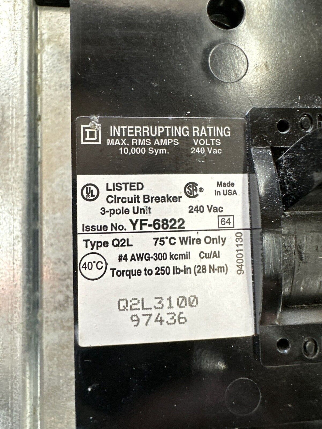 Square D NQOD442M225 NQOD Panelboard 225A 208Y/120V 3PH MCB Indoor Encl Q2L3100 P367 Used