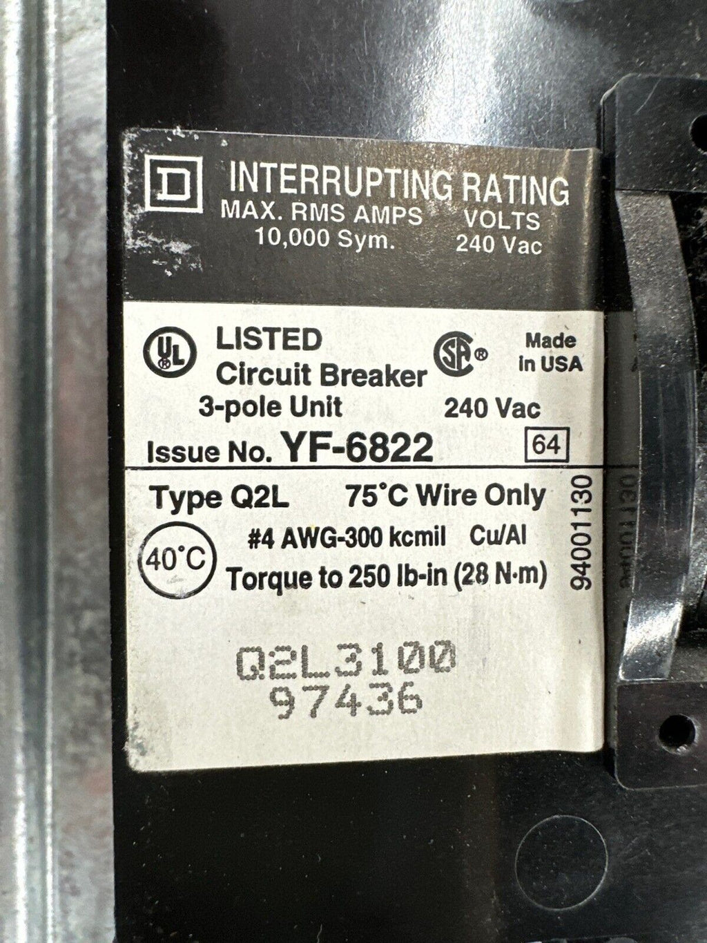 Square D NQOD442M225 Panelboard 225A 208Y/120V 3PH 4W MCB Main Q2L3100 100 Amp P394 Used